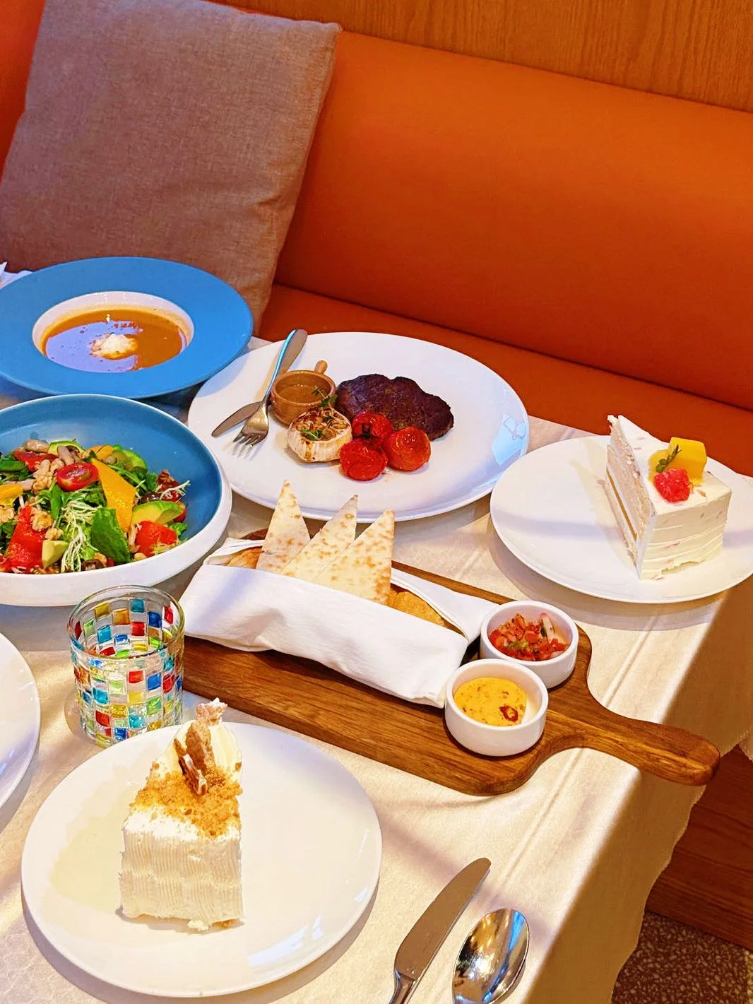 ✔️自选主厨甜品:服务员会推着三种口味甜品车,让我们自选,提拉米苏我想达到带走的好吃程度🍨