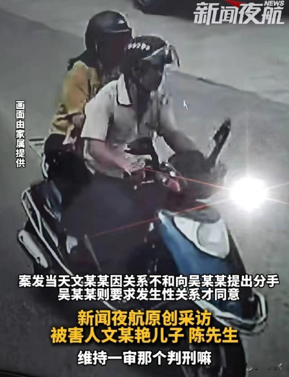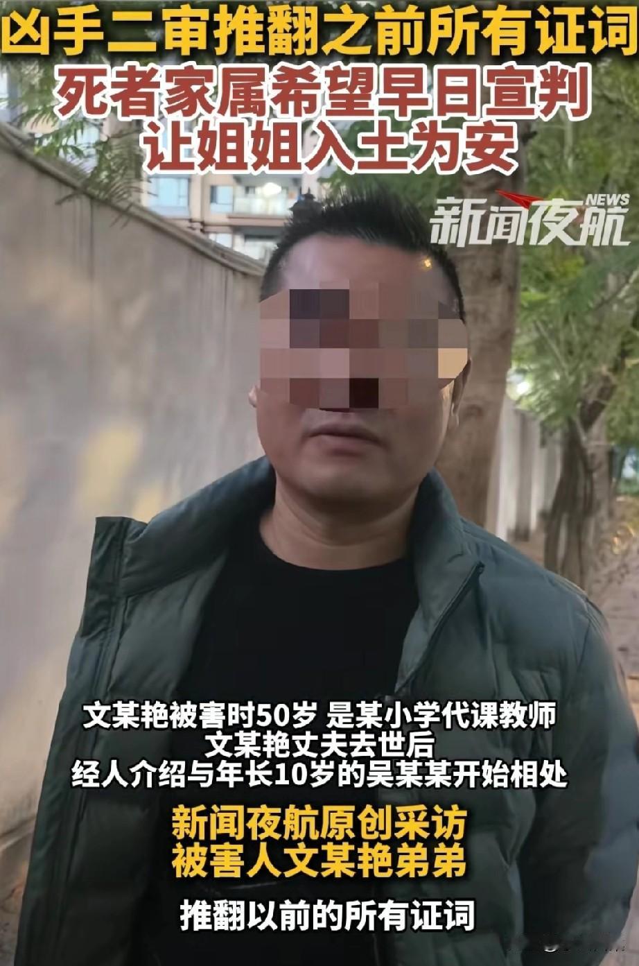 广东女教师被60岁男友杀害后,对方不仅误导家属寻找,还将衣物全部拿走,使其赤身裸体孤零零躺在荒草地。他长期存在暴力倾向,第一任老婆就是被打跑的,如今犯下大案,一审判死刑,女教师家属只希望二审早日得到想要的结果,让逝者入土为安! 2024年8月16日,文老师的女儿回老家发现母亲不见了,她询问吴某,也就是母亲同居男友,对方一边装作不知情、一边用言语误导。 通过监控录像寻找追查,最终发现文老师在一处山坡被人杀害,凶手正是吴某。 要说文老师,一辈子过得并不容易,30多岁丈夫去世,自己拉扯3个子女,后经亲戚介绍认识吴某,两人交往了11年,说一句日久情深都不为过。 可就因为分手和不同意野外发生关系,吴某竟用斧头将文老师残忍砍杀,还将衣服全部收走,让曾经的爱人赤身裸体躺在荒郊野外,这多少是由内心愤恨引发的狠狠羞辱。 都说一日夫妻百日恩,吴某无情冷血,单从随身携带斧头看,他就不是临时起意。之后子女们也逐渐了解到了吴某的本来面目,只不过凶案已经发生,一切都太晚了。 原来在认识文老师前,吴某结过婚,因为经常家暴,第一任妻子非常明智地选择离开了。 他刚去文老师家,开始表现得很好,子女们也就没反对,还对他印象不错。后来各自有了工作,母亲报喜不报忧,被打也是默默忍受,孩子们蒙在鼓里,无法帮助母亲半分。 当争则争、当断则断,逆来顺受并不是什么褒义词,文老师怕子女为自己的事情烦心,可子女原本就是她的坚强后盾,拉扯长大了,不护母亲护谁呢? 坏人欺软怕硬,越是容忍,对方越张狂,嚣张气焰一旦被打掉,便会乖乖收敛,我们手中的法律武器,便是他们克星。 今年4月,一审判决吴某死刑,他不服上诉。就在昨天,此案二审,吴某装疯卖傻,推翻此前所有证词,不承认自己有杀人大罪。 法律是公平且严厉的,家属希望维持一审原判,早日对吴某死立执,让还在冷冻遗体的文老师入土为安! 爱情是人间美好,悲剧莫过于因爱生恨、反目成仇,不爱请放彼此体面离开,这既是人性的善良,也是法律的底线…… 【关注@小讼言案 ,为您分享更多精彩】 (来源:新闻夜航)