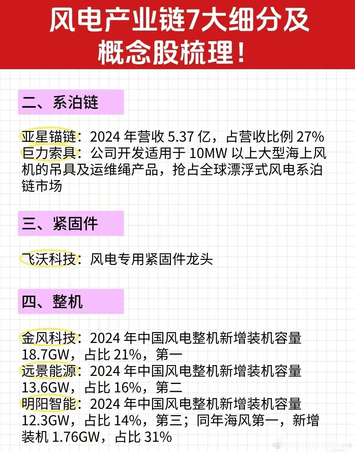 下周风电概念有重大利好,世界风能大会即将举办,世界风能协会中国会员有哪些?风电产业链龙头梳理!世界风能大会是全球风电领域具有广泛国际影响力的学术交流平台。第22届世界风能大会将于2025年12月3日-5日在广东汕头举行,本次大会主题为“风能赋能未来:创新、协作与可持续增长”,风电产业链龙头企业有哪些?世界风能协会(WWEA)有超过600名会员,这些会员分布在全球约100个国家。中国企业会员有金风科技、三一重能、中材科技……风力发电产业链包括变流器、叶片、主轴、整机、铸件、海缆、紧固件等等,细分领域龙头代表有天顺风能、海得控制、日月股份、大金重工、长飞光纤等等财经
