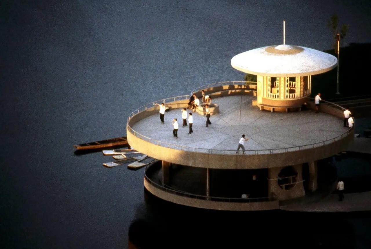 江边晨练,桂林某地,1979年7月摄。