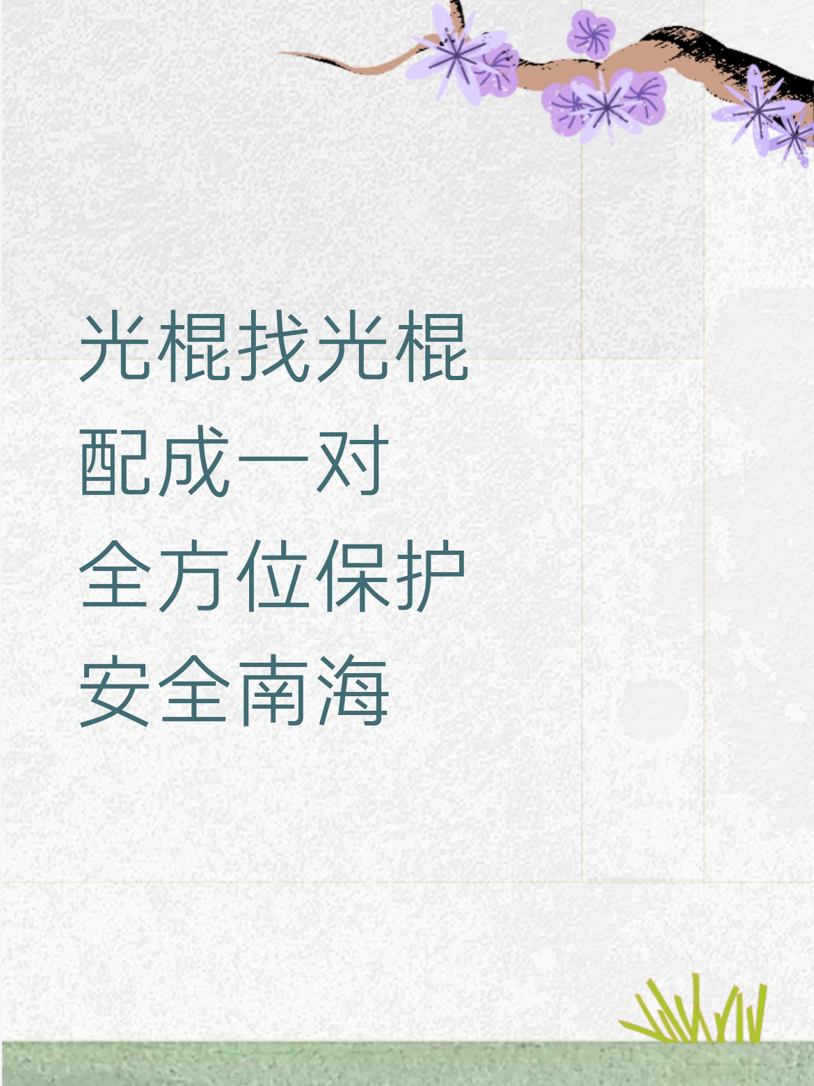 上联:光棍找光棍,配成一对下联:全方位保护,安全南海