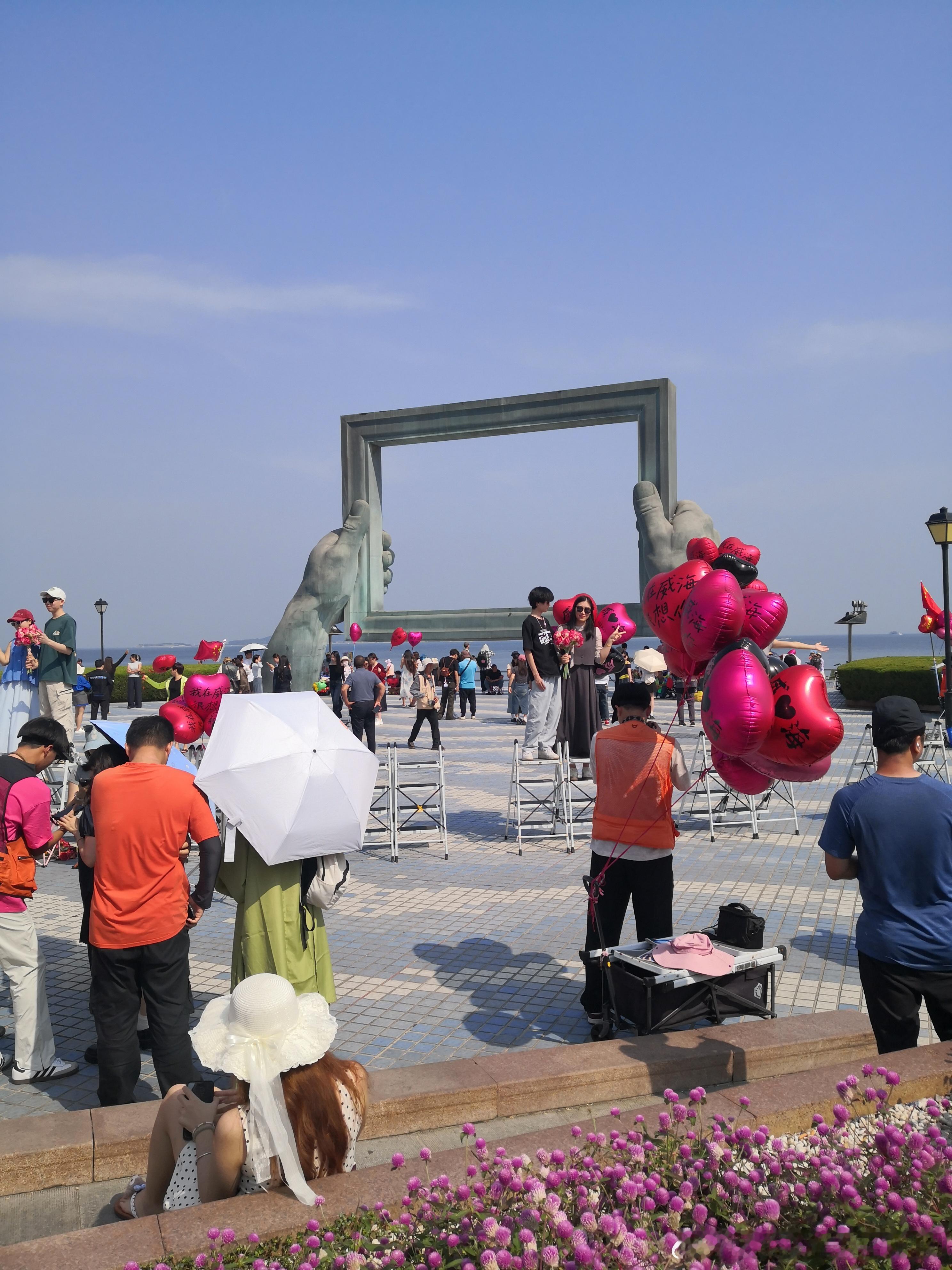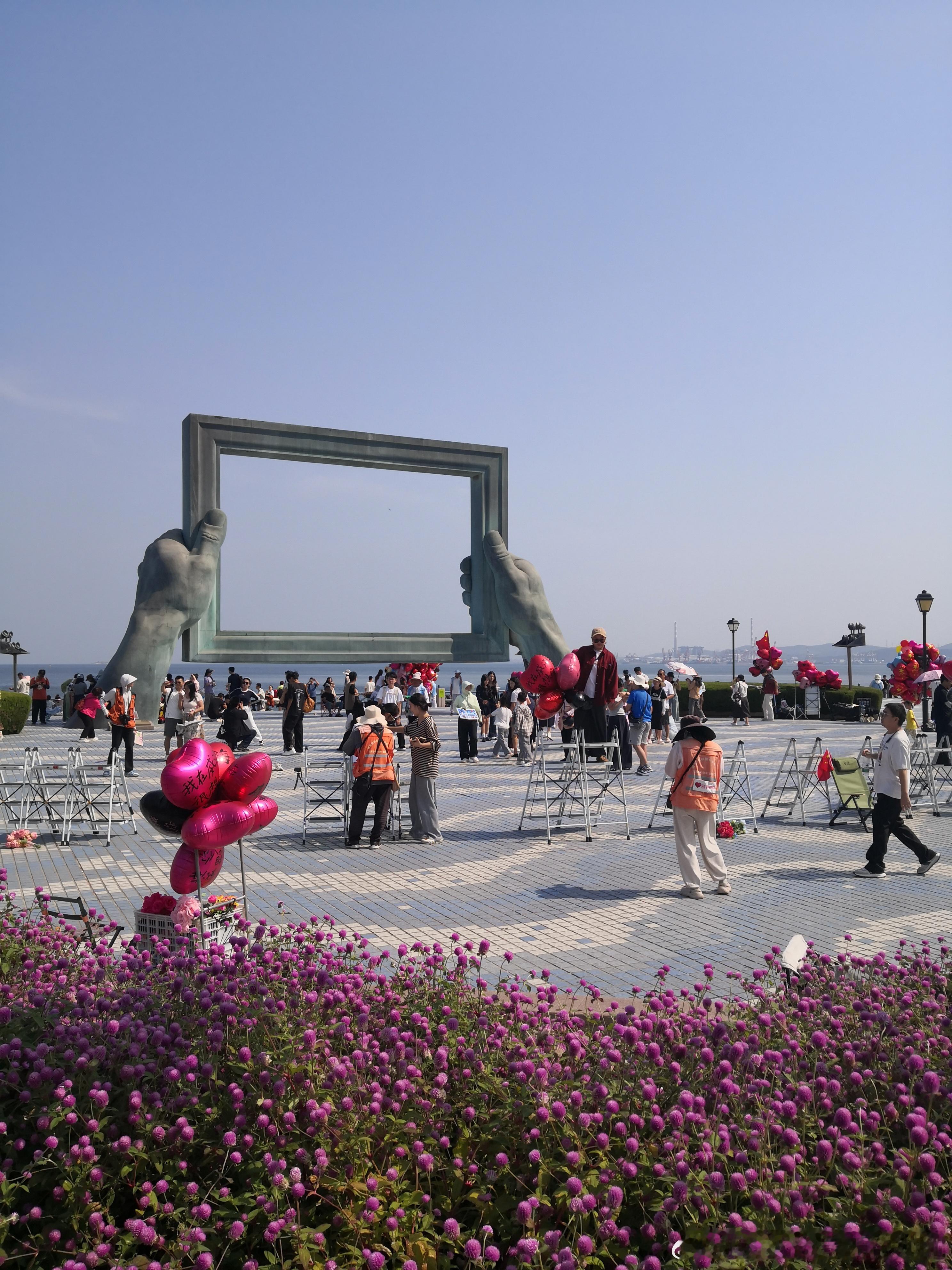 坐渤海轮渡去威海卫旅游,威海大像框有点意思