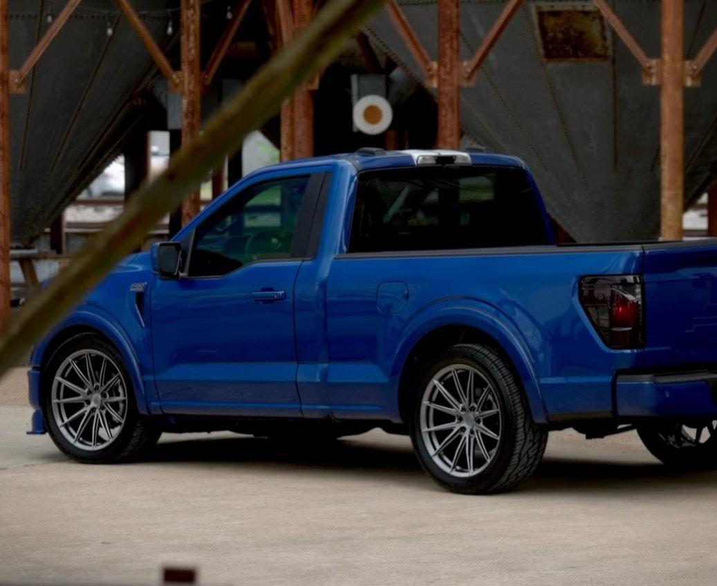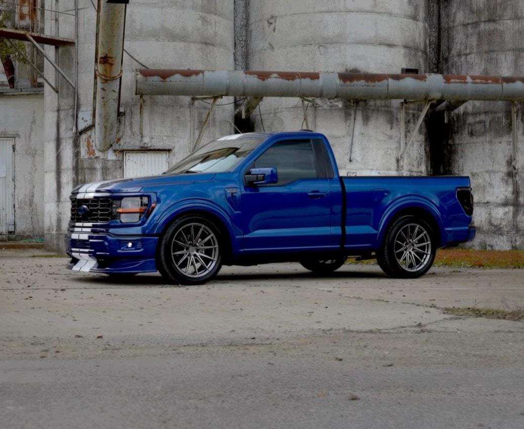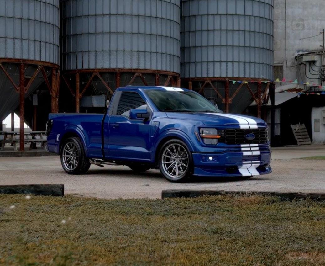 见过给皮卡打肉毒杆菌的吗? 佛罗里达改装厂给F-150单排座灌了Whipple机械增压,配上Vossen HFX-2锻造轮毂,蓝白条纹涂装让谢尔比血脉瞬间觉醒! 最狠的是保留原厂单排短轴设计——比当代双排座轻了200公斤,机械增压加持后简直就是拖着导弹的板车!