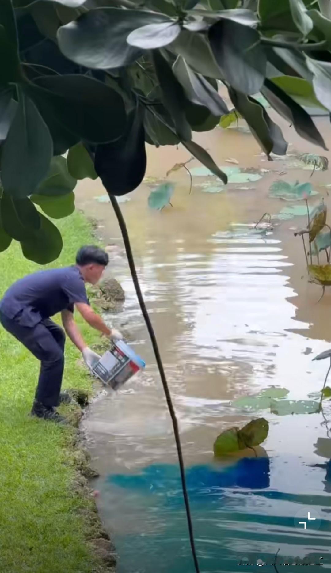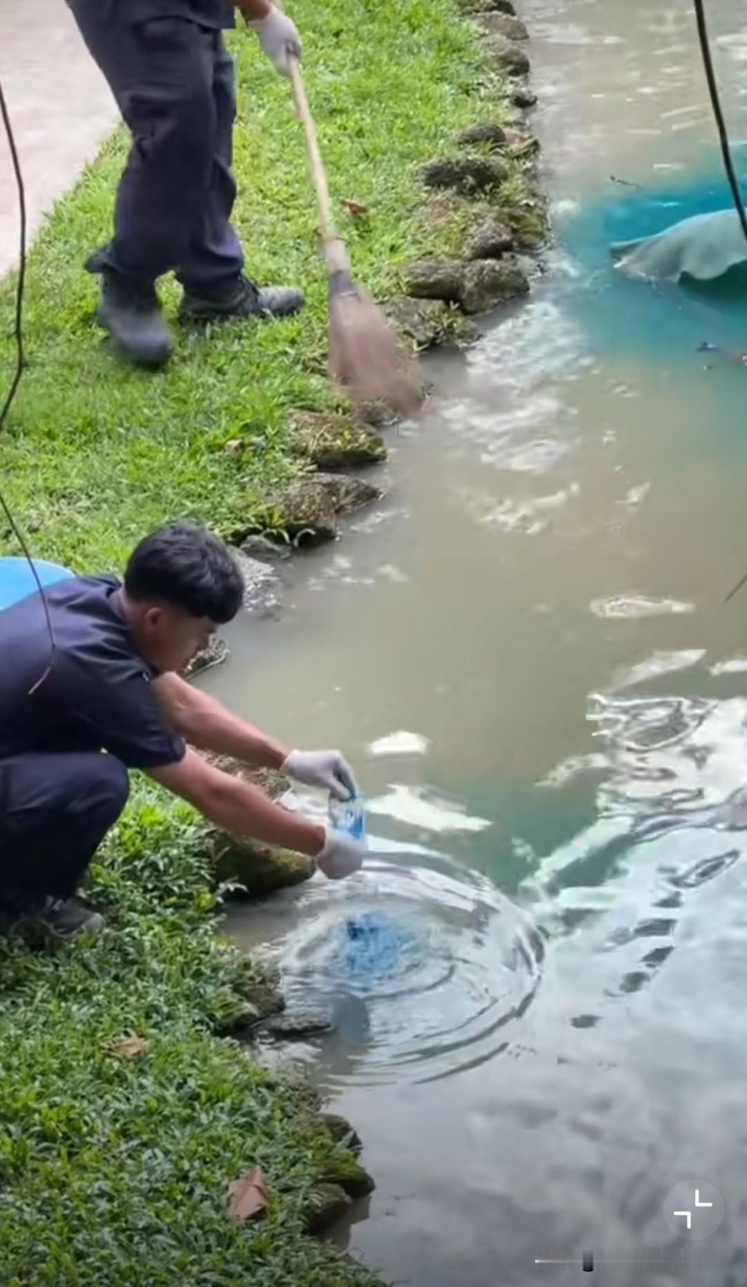 在泰国旅游的欧美游客惊讶地发现,泰国景区的碧蓝池水是用颜色染上去的……