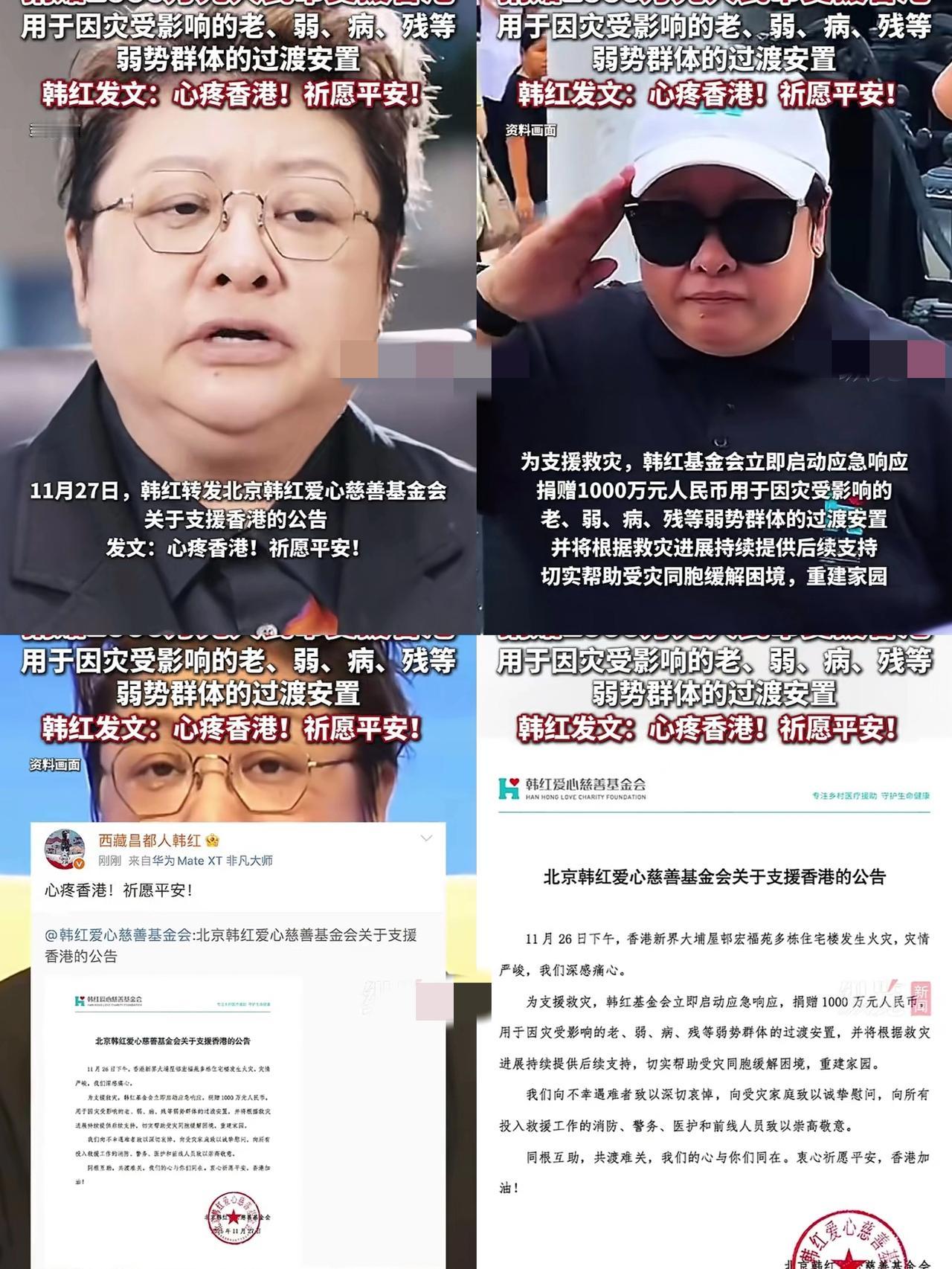 韩红 依旧是我们认识的那个韩红 时间不但没有改变她的样貌,就连对她做爱心事业的决心都没有丝毫动摇。 曾几何时我们对爱心事业心如死灰,而她的韩红基金就像照进黑暗里的一束阳光。让我们重新燃起了对爱心事业的决心。 这不韩红一接到大火事件,第一时间采取捐款等诸多事宜。虽然和那些大咖一比,金额显得少了些。可最起码她将我们大家的每一分钱都花在了刀刃上。 我想,凡是像韩红基金捐款过的人,从来都没有质疑过她吧。这或许就是她在大家心目中的份量。 如果是我,我也会像她基金会贡献自己的一份力。就像网友大哥一样,即使债务缠身,也丝毫不影响他对社会先出一份绵薄之力,像韩红基金会捐款。 你怎么看?