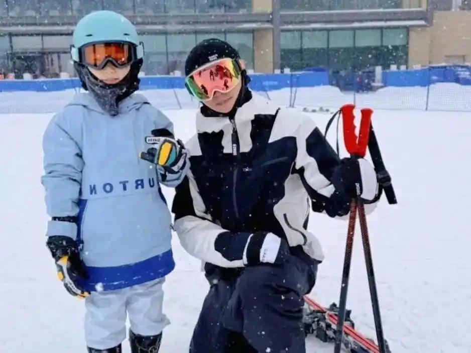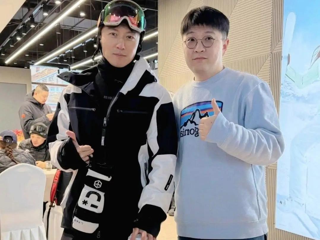 45岁谢霆锋在河北滑雪被偶遇,他穿着滑雪服,身材修长好帅气啊
