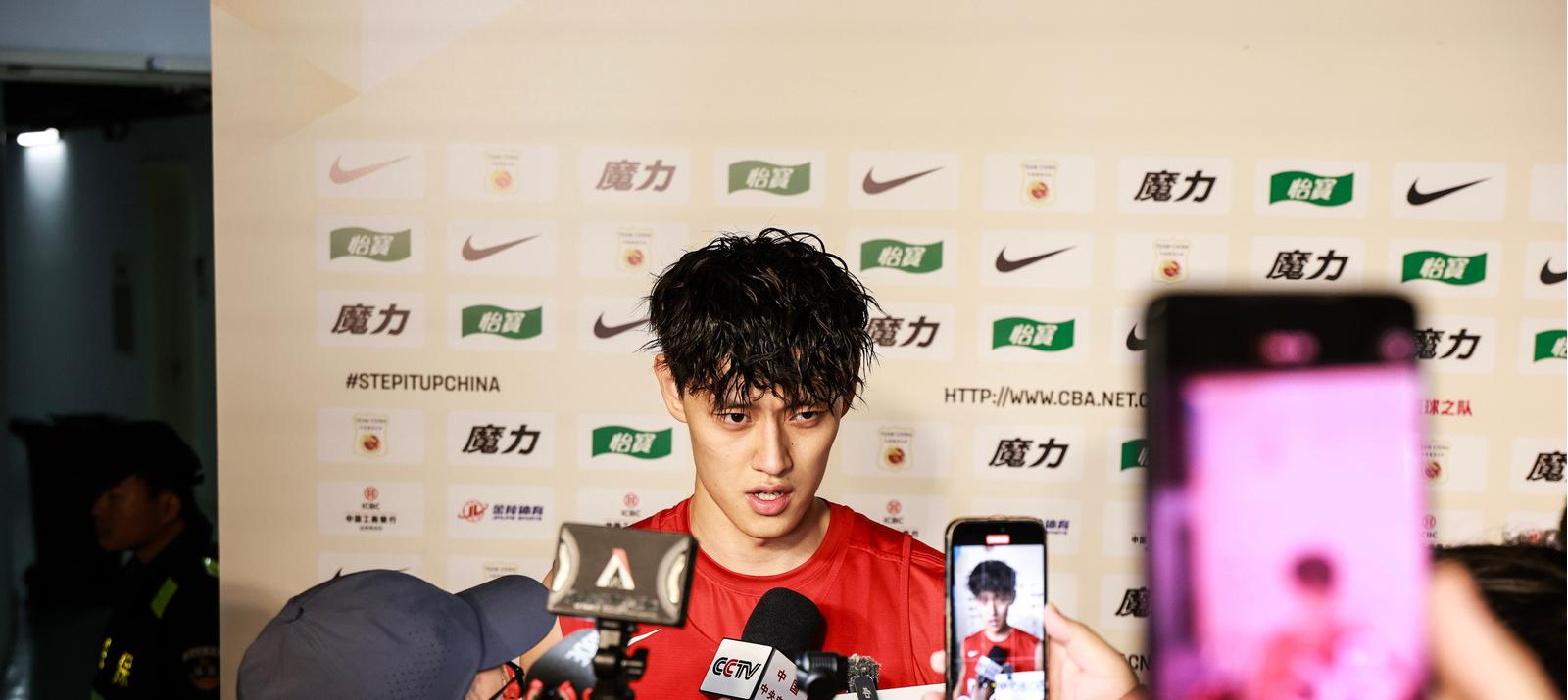 今日,中国男篮完成了赛前的采访训练,训练后曾凡博接受媒体采访。
