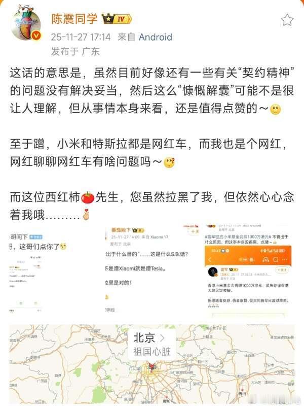 陈震已经快一个月没有逆行撞人了,不管出于什么原因,他不去违法这件事本身没得黑,为他点赞如果要我道歉,我为自己的表述不清,道歉,因为10月3日车祸,到今天快2个月了。