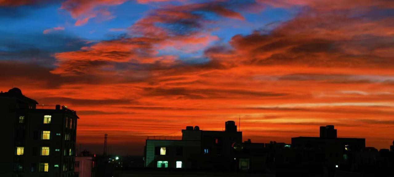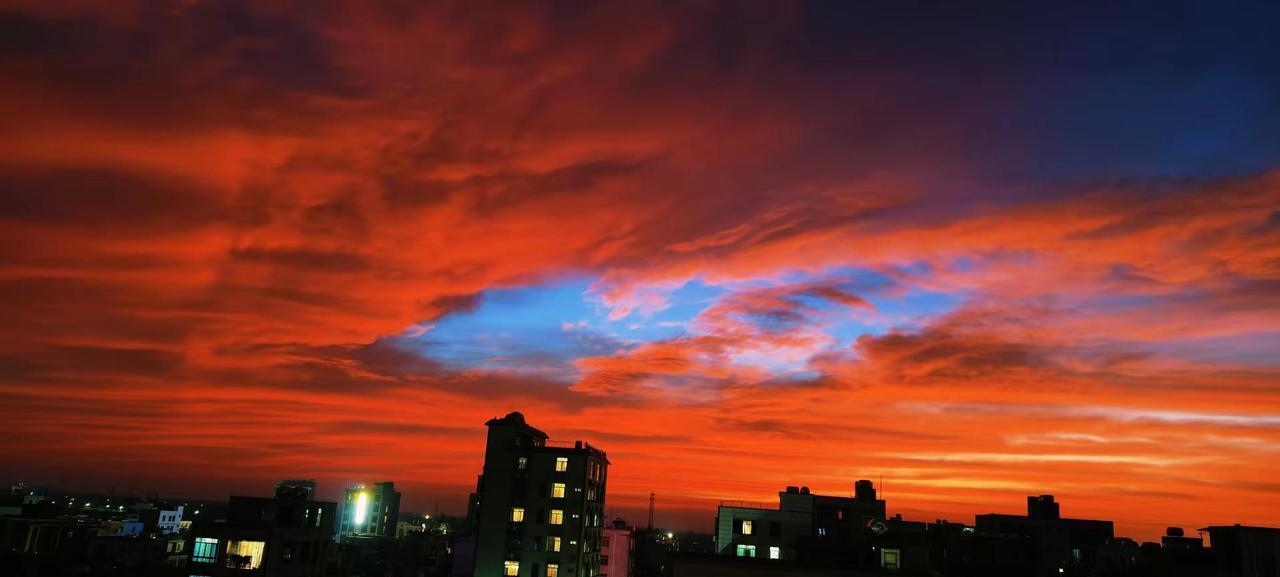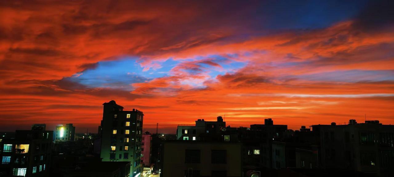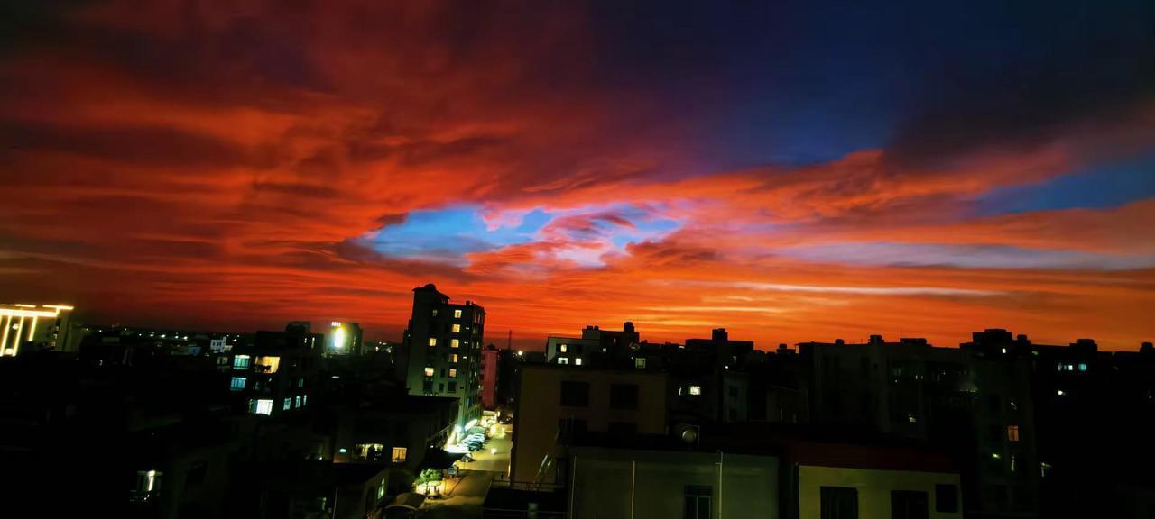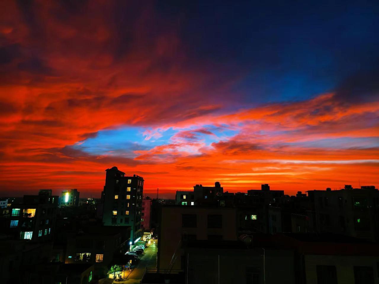 夕阳把天空染成了一整片橙红色的温柔,像一幅热烈又安静的油画。治愈