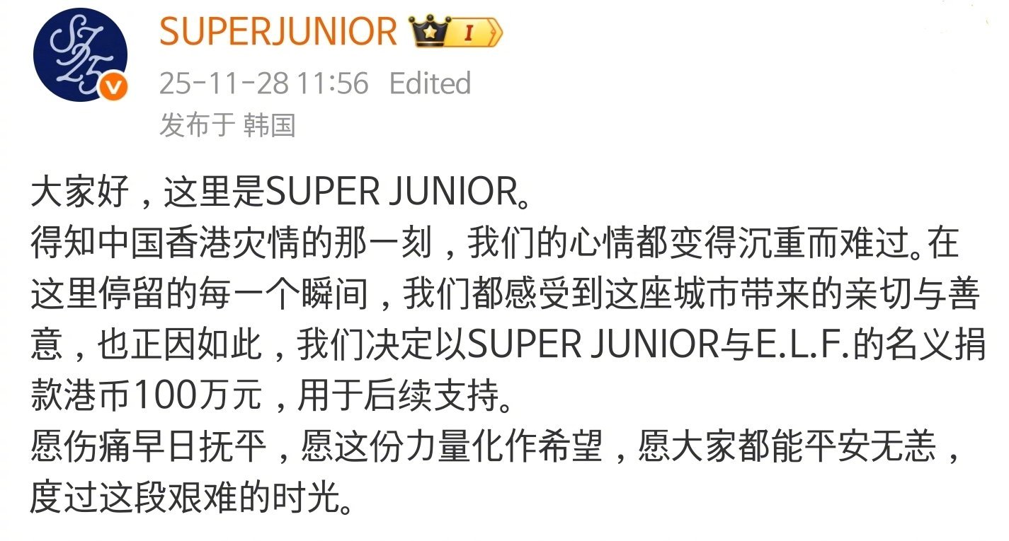 【Theqoo】Super Junior向中国香港火灾受害者捐款100万港币SuperJunior