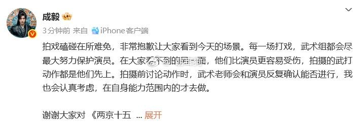 演员成毅拍戏时坠落后脑勺触地,当场蜷缩翻滚无法起身,本人发文:会认真考虑,在自身能力范围内的才去做