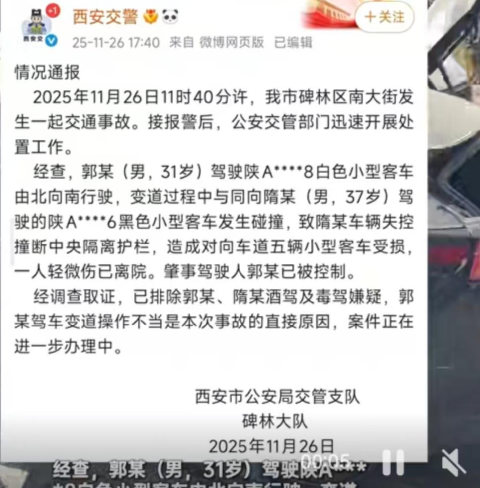 11月26日,西安市碑林区南大街发生一起交通事故。警方通报称肇事驾驶人郭某已被控制,案件正在进一步办理中。 正在热议 18人 绝世大男神:现在转弯变道不打转向灯的二货多的是 广西 128 仁厚还如意的东青:这么七零八落的 只有一个轻伤,真幸运 内蒙古 10 待我白发三千丈:这种添乱的人,动机不纯!定重罪!!! 陕西 1 查看更多 说说你的想法...