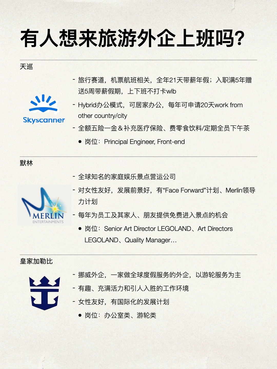 而且旅游外企的福利通常都不差,年假多、弹性工作、部分岗位可hybrid,有的还有旅游补贴和跨国工作机会。对年轻人来说,这种职业体验真的有活人感多了