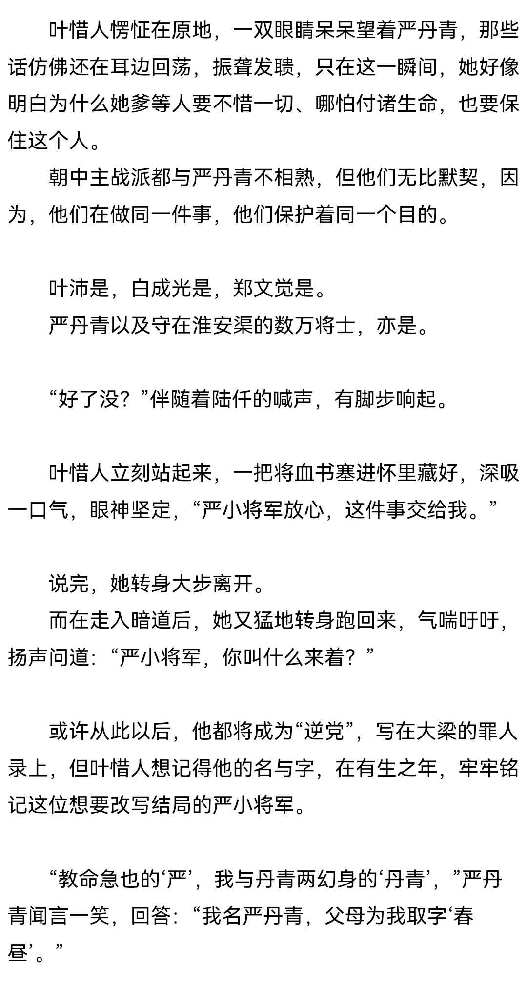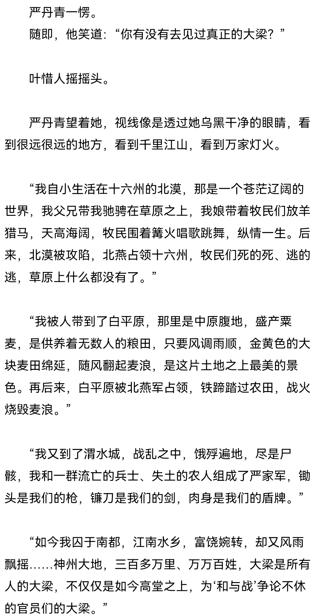 [种草R]全文共循环了24次,搭配朝堂阴谋,剧情紧凑有张力,男女主联手破局人设带感,反派智商在线,主和派首领蒋相也不是真正意义上的坏人,活在手札和番外里的严婉赚了我不少眼泪。过程虽艰辛,但最终迎来希望。亲情,爱情和家国大义融合的很好,推荐。