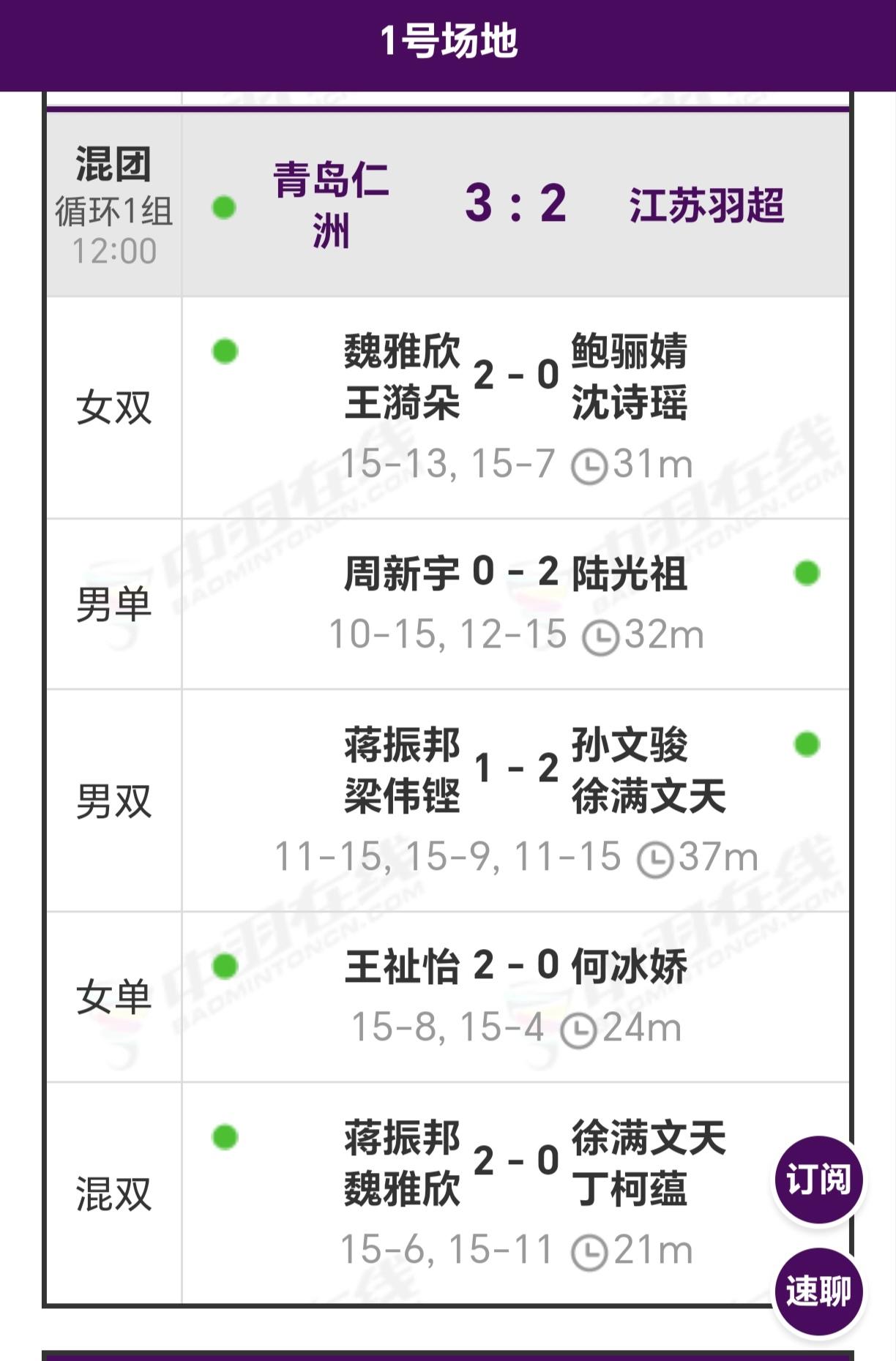 蒋振邦还是擅长打混双,男双搭档猛将梁伟铿,输,混双原配搭档轻松取胜对手 2025年羽超联赛总决赛小组循环赛 青岛仁洲派出混双名将蒋振邦搭档男双猛将梁伟铿出战男双,结果经过三局鏖战,以 1 - 2(11-15, 15-9, 11-15)不敌江苏羽超小将孙文骏/徐满文天组合,丢一分,打比分1-2落后。 最后一场混双蒋振邦搭档原配魏雅欣出战,对手依然是小将徐满文天搭配丁柯蕴的年轻组合,结果经过两局以2 - 0(15-6, 15-11)完胜徐满文天/丁柯蕴组合,轻松取胜拿下关键一分,助青岛仁洲以3-2战胜江苏羽超。 可以看出邦邦哥的长处还是混双项目,不是每一个人都可以像徐承宰一样混双、男双都可以很厉害,一样出成绩!