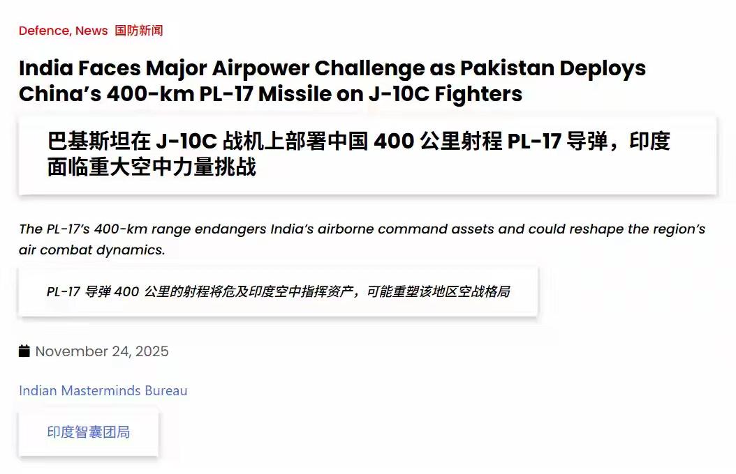 巴铁尝到甜头后,开始更换更好的PL17了!这一举措,直接让印度专家破防。 57空战的结局,印度虽然带着歌舞团全球巡演,宣传自己大获全胜。但他们的专家还是懂的。相较于PL-15 200公里的射程,PL-17高达400公里。这就意味着未来印度战机刚从机场起飞,就能被歼10CE直接锁定了。难怪印度专家要破防了——这仗还怎么打?要知道新德里距离印巴边境也不过三百多公里!到时候来个“千里之外取敌酋首级”的国际版,那就有意思了。难不成要再一次变新新德里?