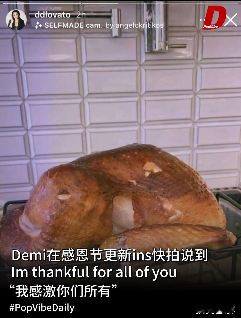 黛米拥抱受伤火鸡后转头烤火鸡示爱! 感恩节名场面!2020年Demi Lovato在感恩节前参观动保组织并与一只受伤的火鸡合影! 但转个背在ins上晒出烤火鸡并且表示感激.“I‘m thankful all of you”我感激你们所有人! 还有个名场面,记者问她:What's your favorite dishes? 她回答:I love mugs[泪奔][泪奔]真的会笑死.demilovato 黛米