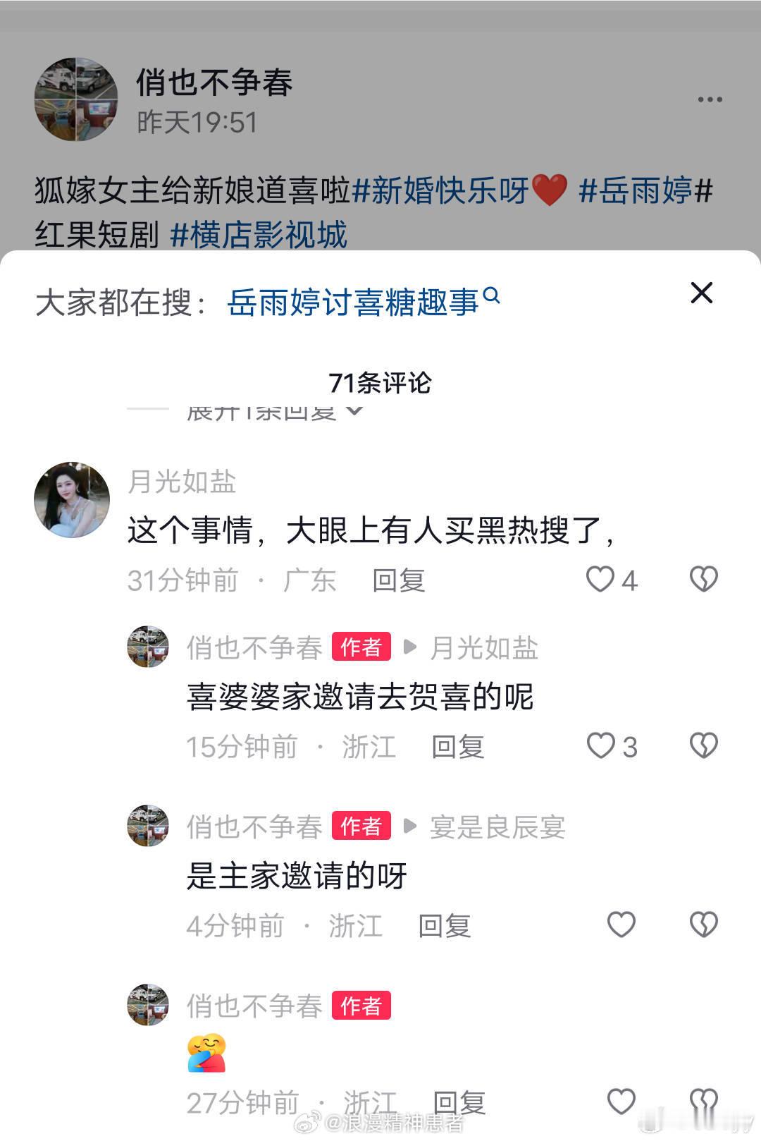 曝岳雨婷闯素人婚房讨喜糖有粉丝说是主家邀请的