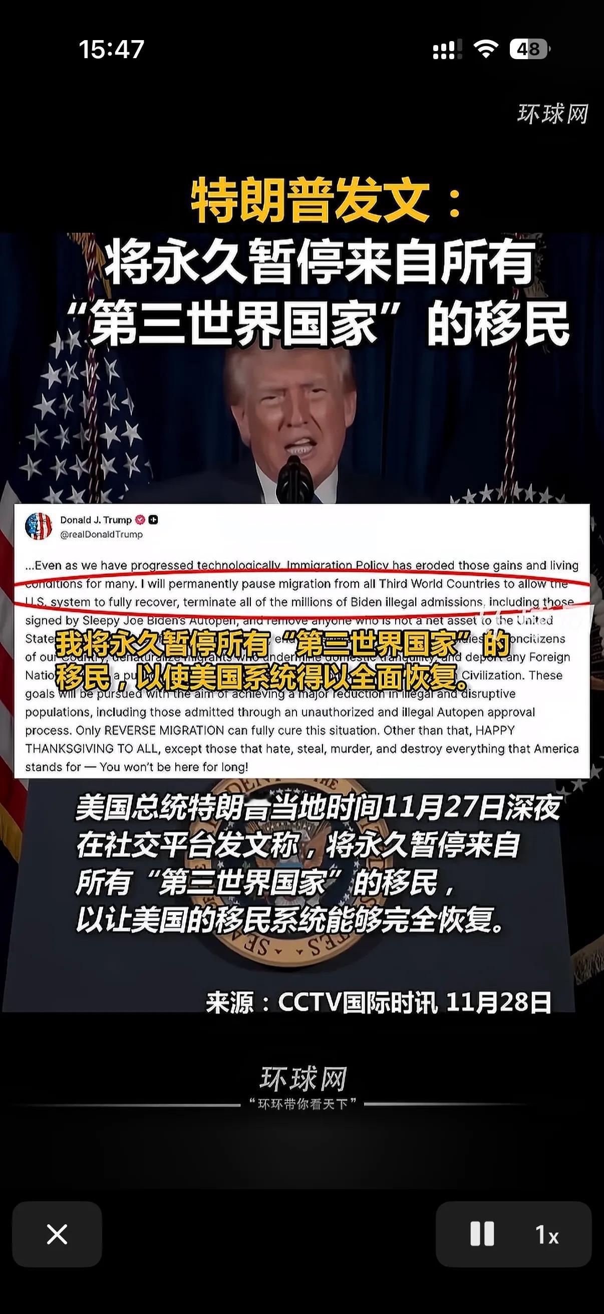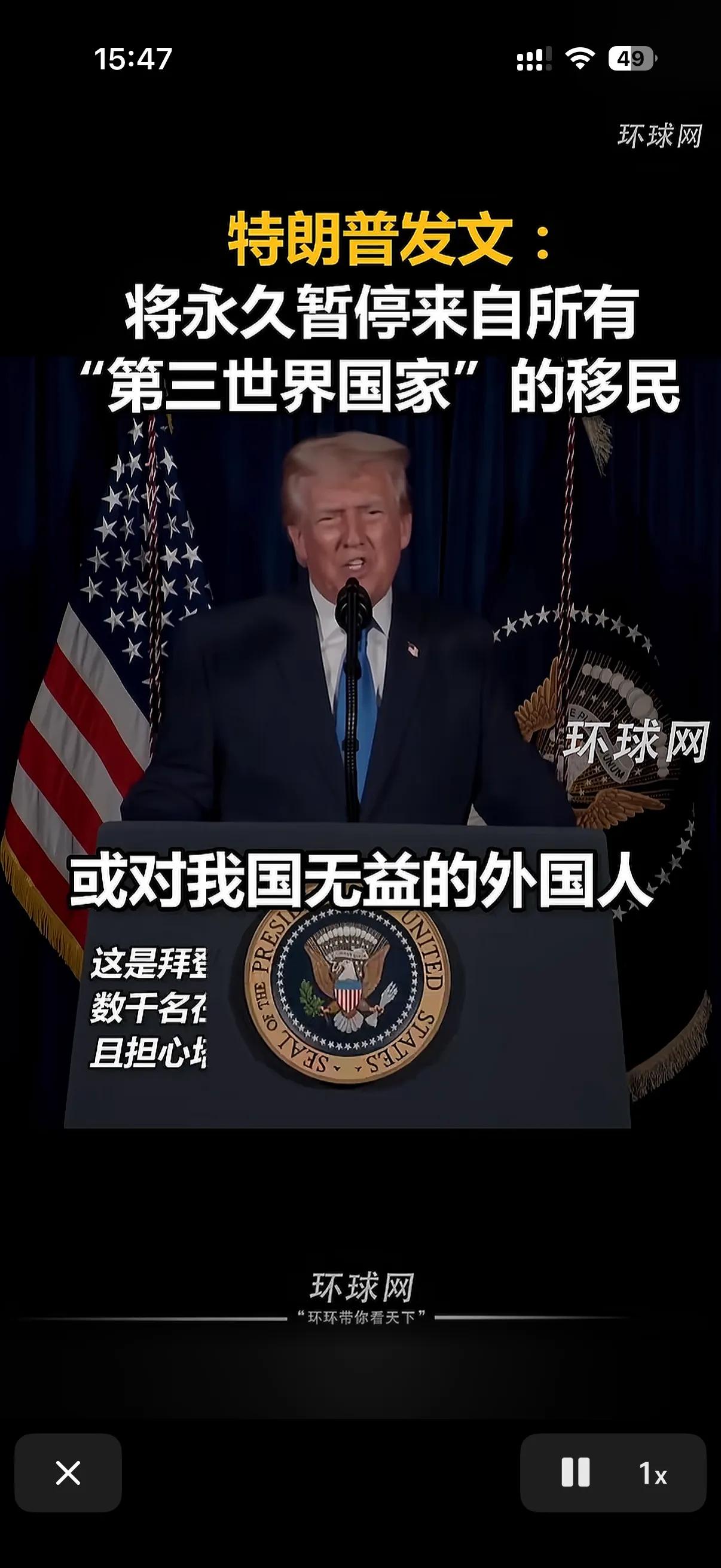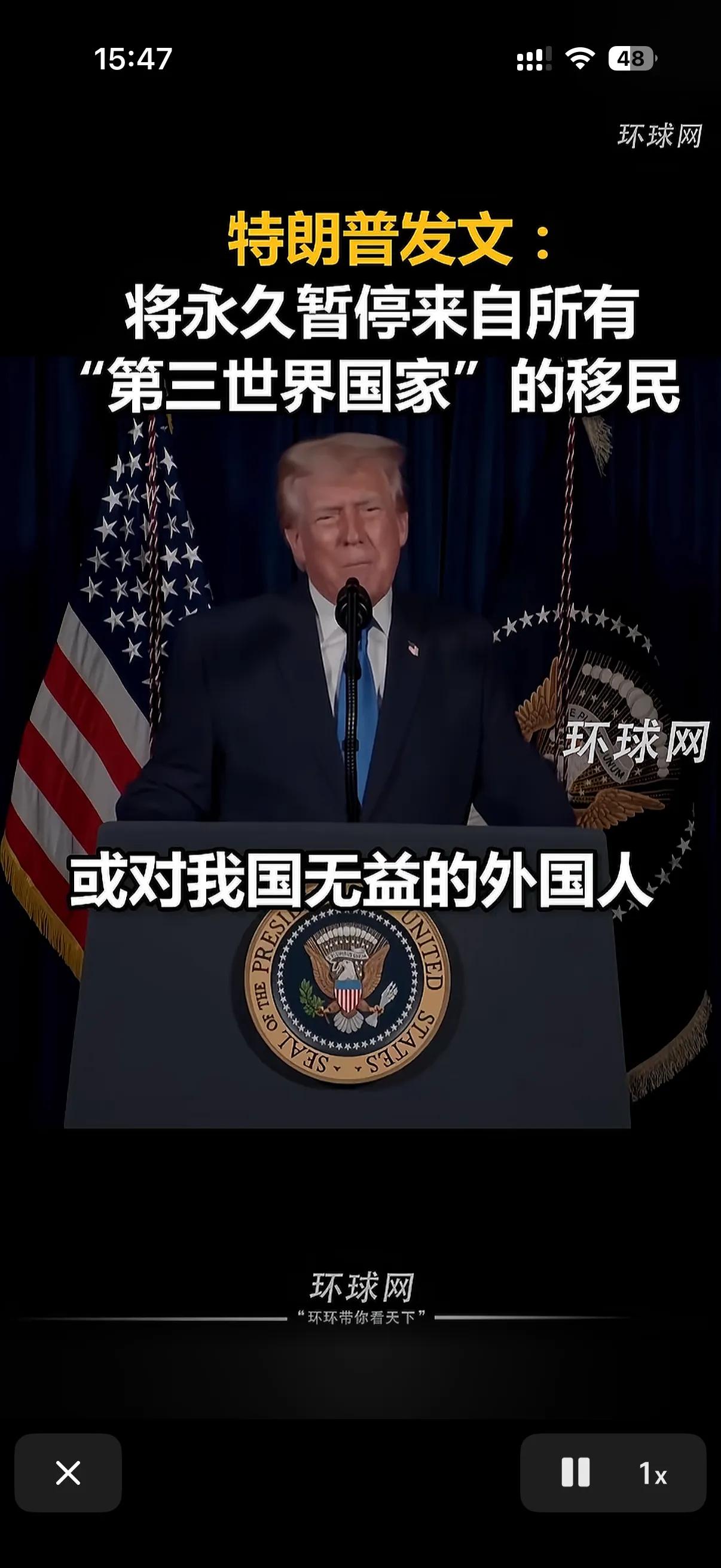 特朗普永久禁止第三世界国家移民,并且严查之前的移民! 因为查出来袭击白宫附近国民警卫队的人居然是美国引进额移民,还是美国的庇护人员, 特朗普表示很震怒! 特朗普发表讲话声称以后将永久禁止第三世界国家移民美国! 并且还将严查之前的第三世界移民过来的人员,如果不能给美国创造财富,不符合移民政策的必须都驱逐出境! 可以说特朗普的这条政策可以说是美国历史上最严厉的移民政策了! 将会堵上不少人想要移民美国的路子,以前不少人想要利用第三世界国家移民美国,现在是彻底没希望了! 而且不只是针对第三世界国家的移民,其他国家的移民一旦判定是对美国无意义的不能创造价值的也将会被驱逐!