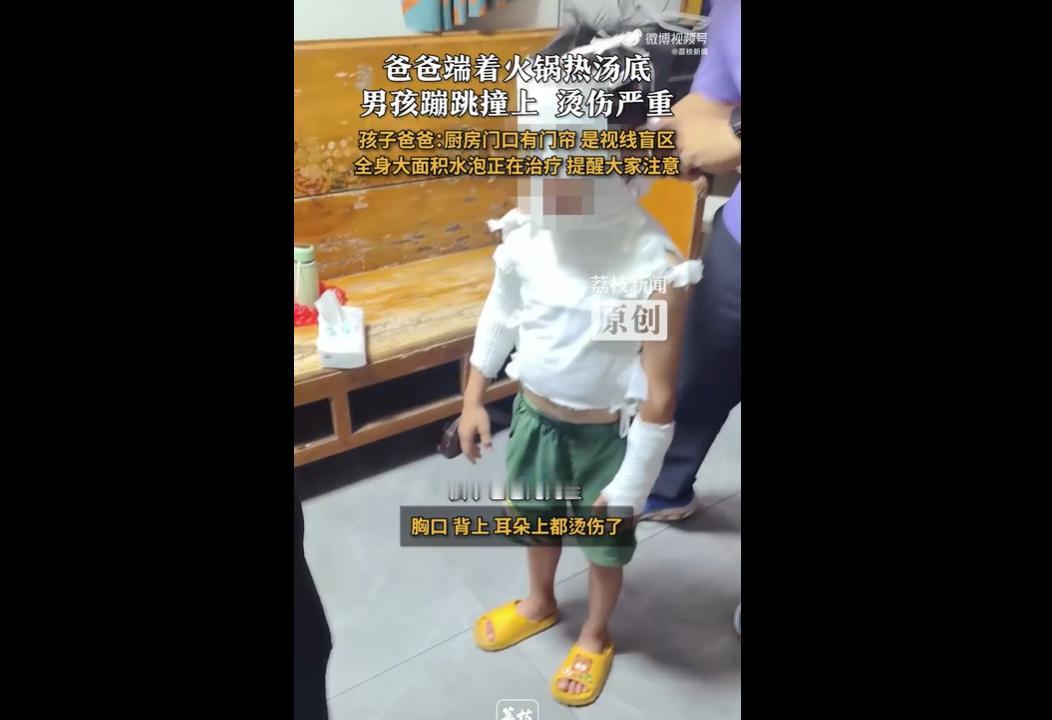 近日,广东茂名尤先生为 6 岁儿子做火锅汤底时,因厨房门帘形成视野盲区,孩子不慎撞上他端的汤底,导致胸口、耳朵大面积烫伤起水泡,目前仍在治疗。 此事引发关注,网友提醒家长排查盲区,山东消防分享 “冲脱泡盖送” 急救五字口诀,相关讨论聚焦儿童居家安全防护的显性风险与隐性盲区。 这道火锅汤底成了 “居家安全陷阱”! 厨房门帘的视野盲区 + 孩子的突然冲撞,直接酿成烫伤悲剧,看着都让人揪心。 家里有娃的都懂,熊孩子就是 “移动小意外制造机”,但很多隐患其实藏在 “看不见” 的地方。 还好有消防的 “五字急救口诀”——冲:立即用15-25℃流动冷水冲洗伤处15-30分钟,快速降温止痛;脱:小心剪开衣物,避免撕扯粘连皮肤;泡:持续冷水浸泡10-30分钟缓解疼痛;盖:用无菌纱布覆盖创面防感染;送:头面部、大面积或深二度以上烫伤需紧急送医。 这简直是烫伤后的 “救命指南”。 其实避免意外也不难,端热汤前喊一嗓子、拆了挡视线的门帘,这些小操作成本为零,却能护孩子周全。 家长的自责再深,不如提前排查隐患。 居家安全从来不是 “事后补救”,而是 “事前防备”,毕竟孩子的安全容不得半点侥幸。 希望更多家长能吸取教训,把隐性盲区都揪出来,让家里的 “小神兽” 能放心撒欢!