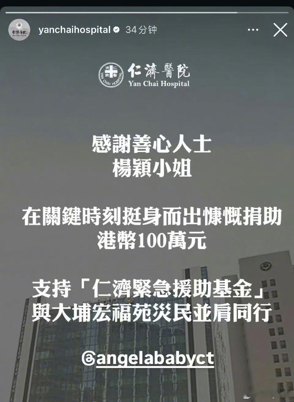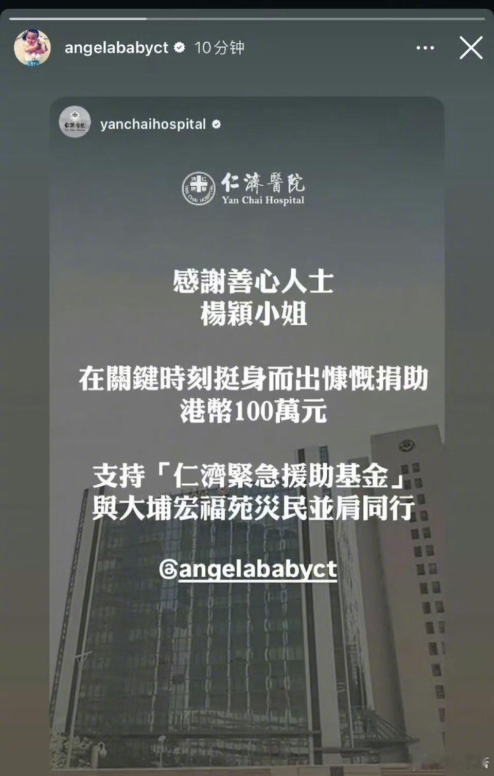 Angelababy捐款100万港币驰援香港!!!杨颖