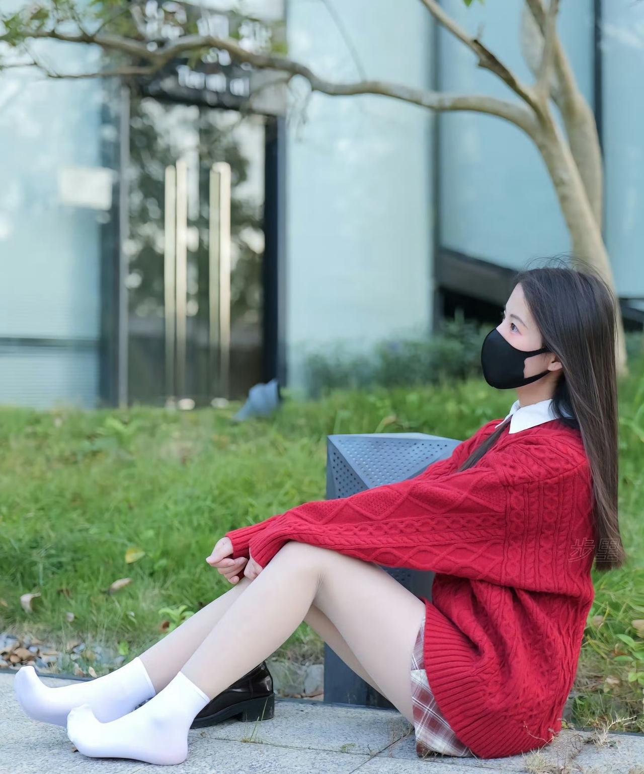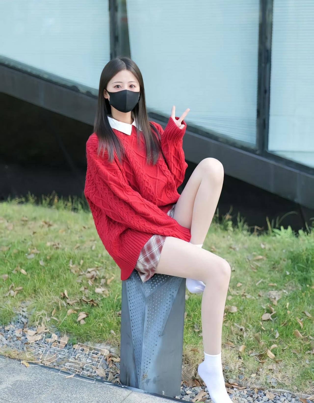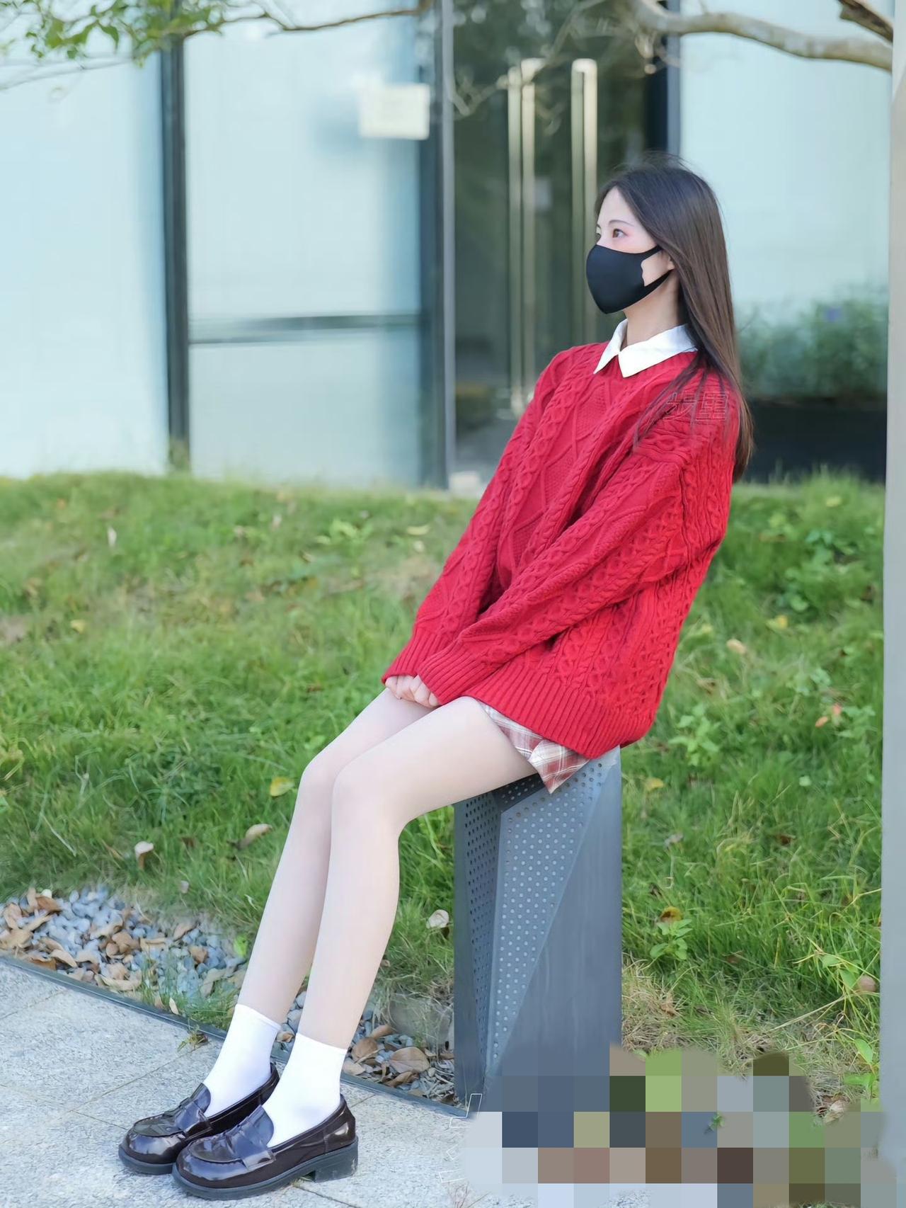 红毛衣+白袜子,温暖又时尚,搭配黑色口罩,轻松出街!🍂👗👠如何穿搭出满满高级感?