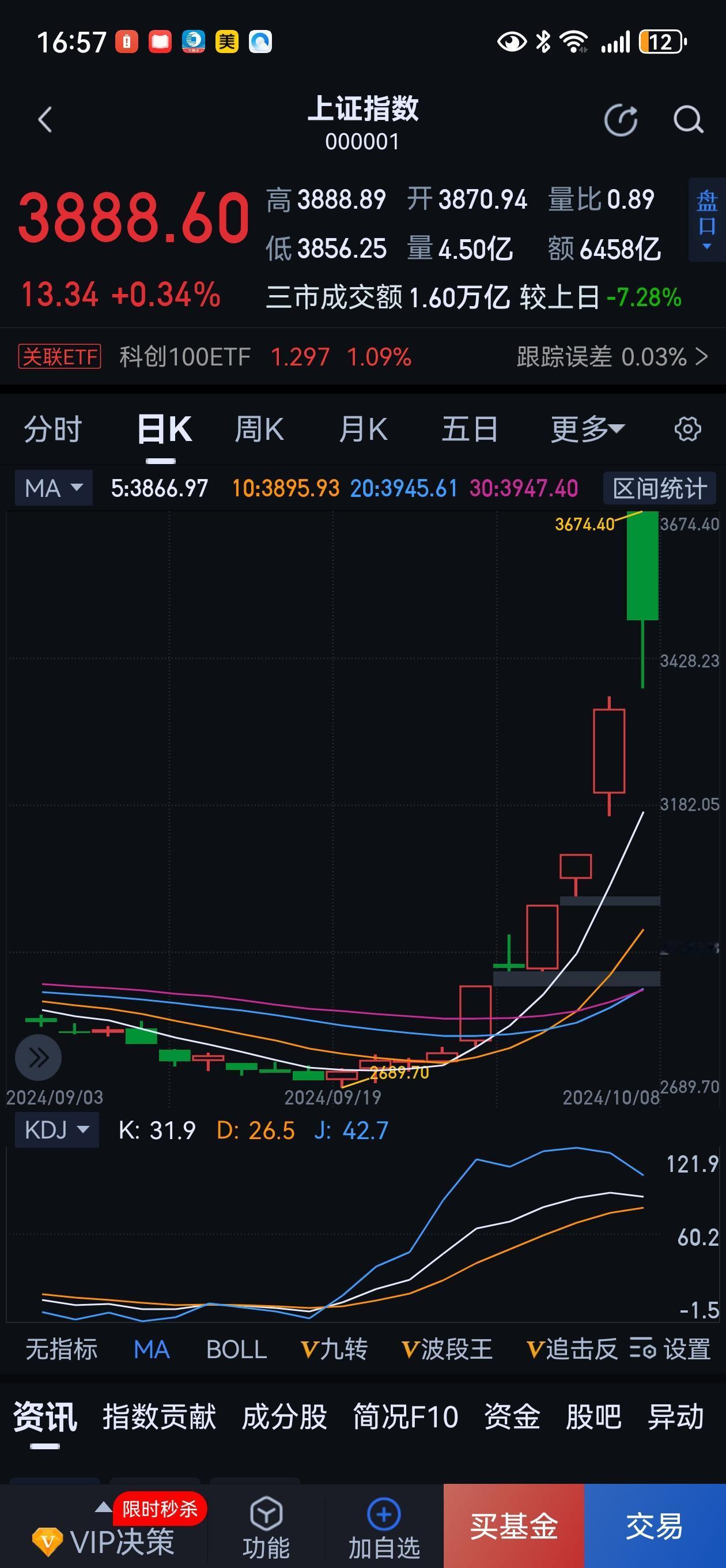 大盘再现底部红三兵+KDj金叉! 大盘今天收盘3888.60,让喜欢数字玄学的股友,喜不自禁,12月这明摆着是又要发又要顺了呀! 今天收盘大盘与去年924行情时,有两个相似之处,均是连续下跌后企稳,收出底部红三兵,且KDj低位金叉,这大多预示着最坏的时刻己经过去,年底红包及业绩浪行情,正徐徐走来。 现在的A股急需一波急升,年底前站稳4300至4500点一线,让所有参与者年底前帐户飘红,不能只是局部,才能说今年是牛市。 不管怎么说,中国做为全球第二大经济体,基本面持续向好,科技转型步伐稳健,可十年指数长期徘徊在3000上下,指数连印度和日本股市都涨不过,实在是令人匪夷所思。