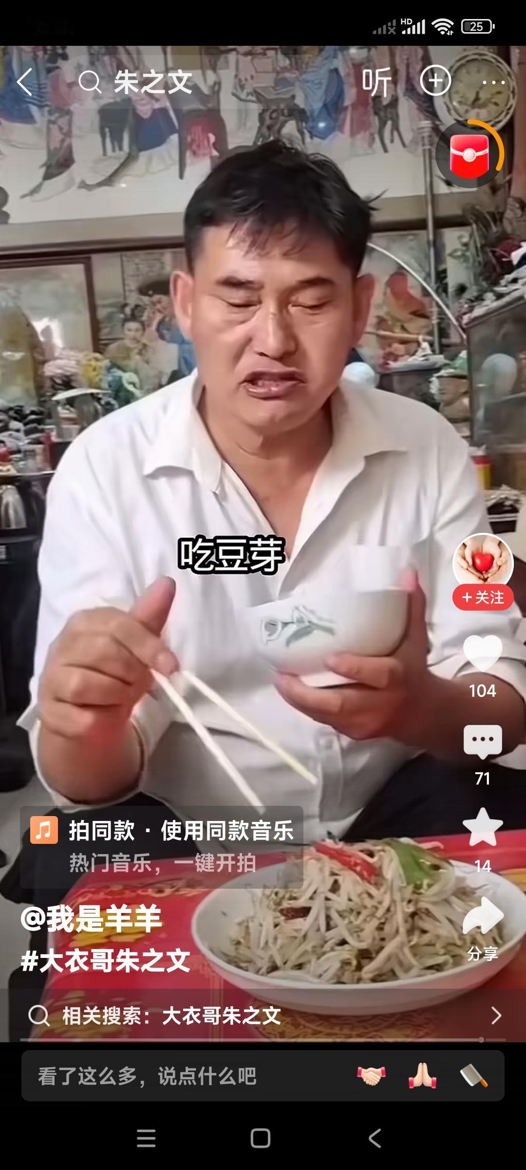 大衣哥朱之文,今天没有吃海参和大虾。 大衣嫂只给做了一盘素菜炒豆芽。 我就背服大衣哥,一个大拇指和二拇指,两个手指头就能把豆芽菜夹起来送到嘴里。 我还纳闷,连使用筷子都那么笨的人,竟然能挣那么多的钱。 你就说服不服吧?