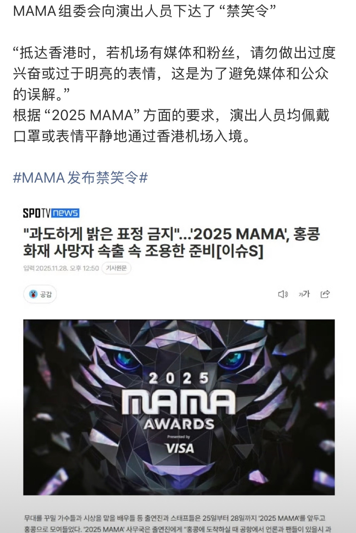 香港这次火灾真的太严重了,MAMA其实应该取消或者推迟的。现在的情况对要参加MA