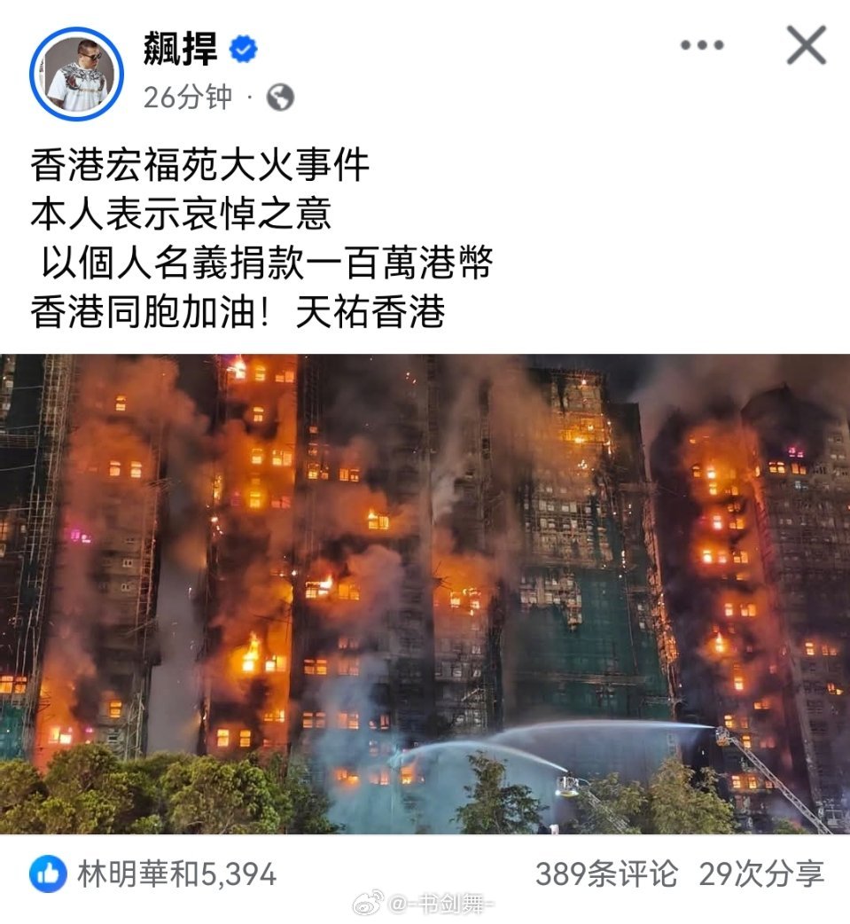 香港火劫牵动九州心,全民同悲共寄哀思。馆长闻讯速伸援手,百万港币善款如暖流涌注,尽显血浓于水的同胞大爱。此举非仅纾困解危,更以赤诚凝聚守望之力,诠释了"一方有难、八方共济"的华夏精魂,仁心义举可敬可佩!