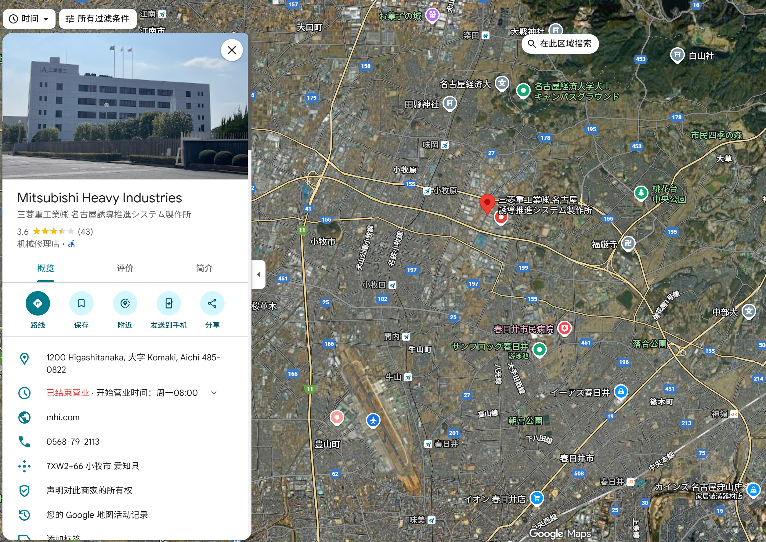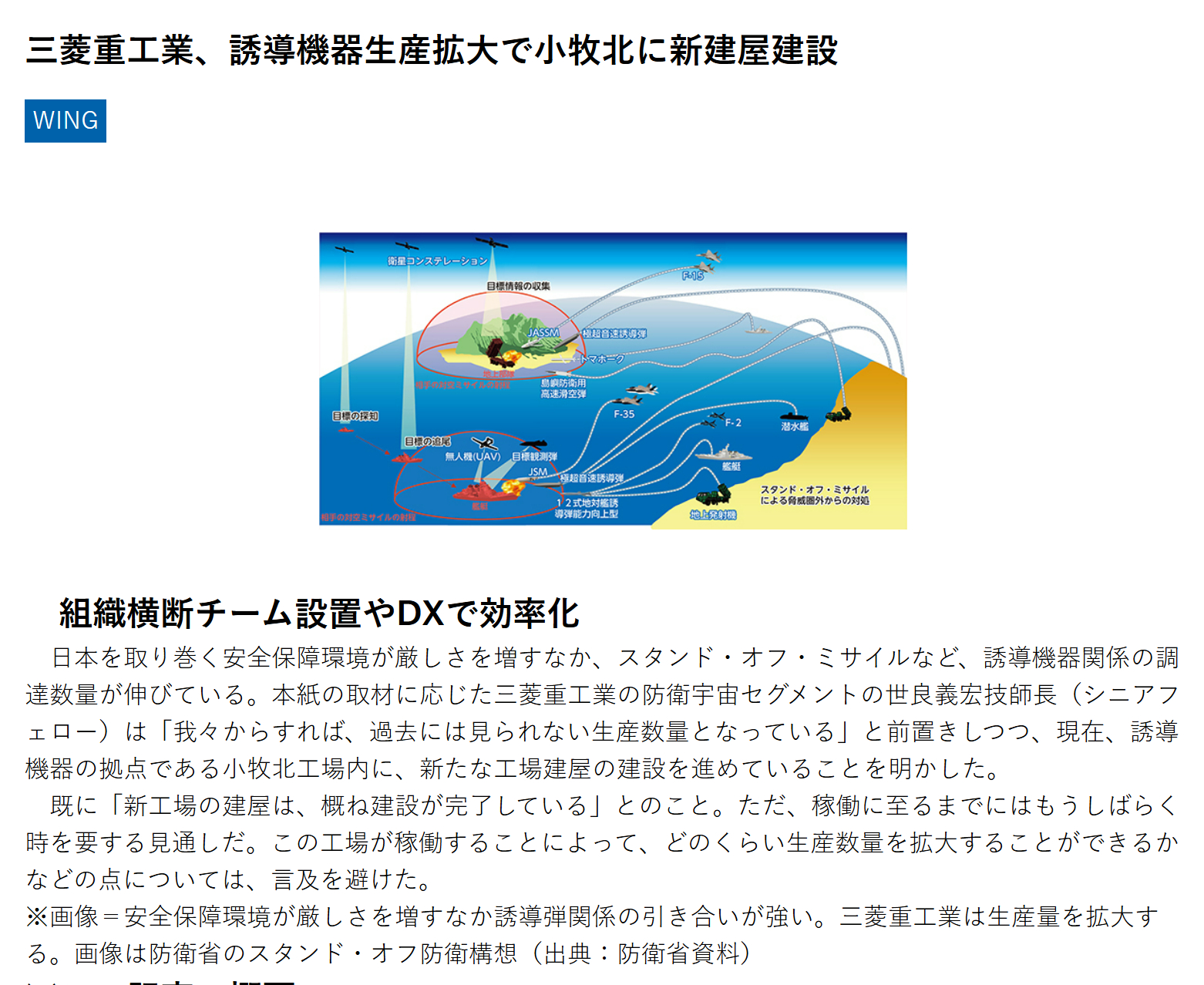 三菱重工小牧北工场新建了厂房(但还未投入使用),以扩大制导设备的生产