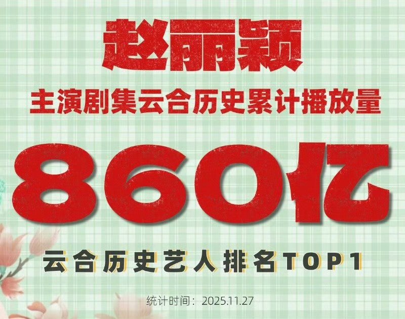 赵丽颖云合累计播放量860亿赵丽颖云合播放量赵丽颖云合播放量,860亿