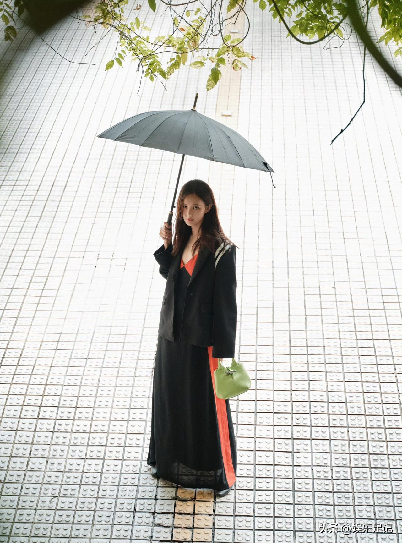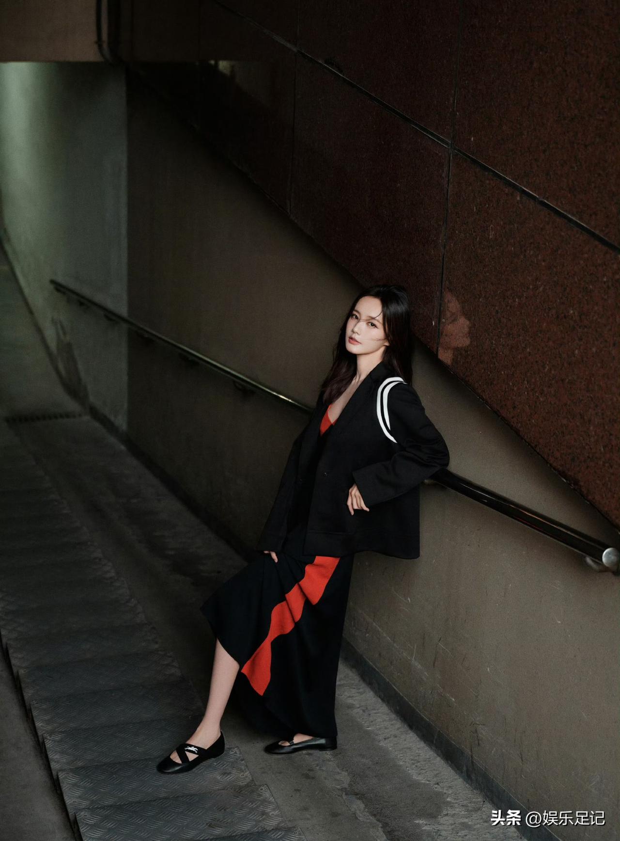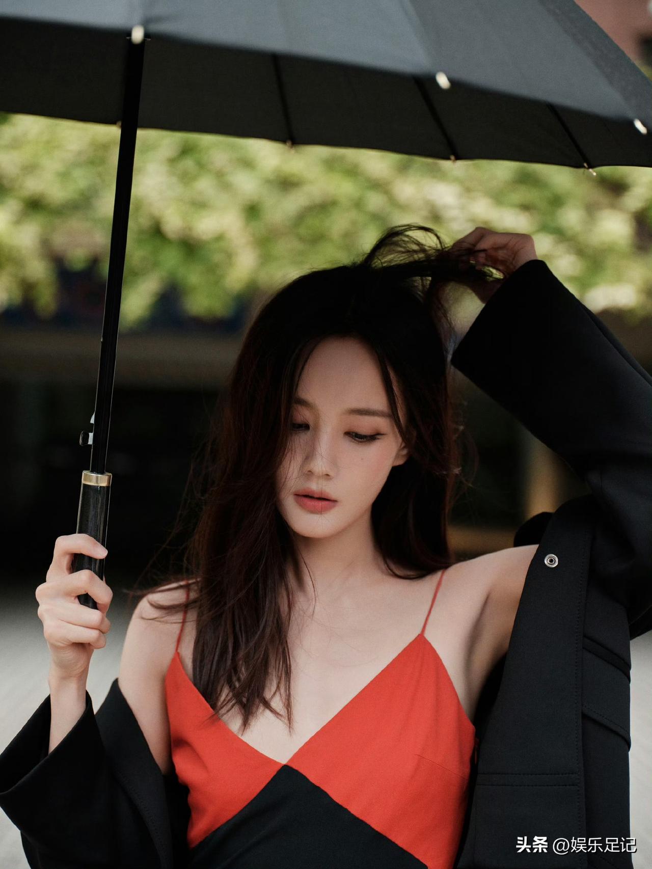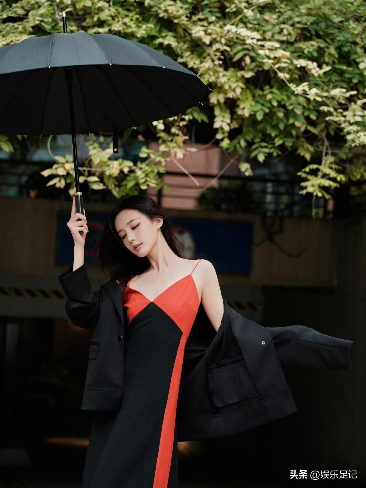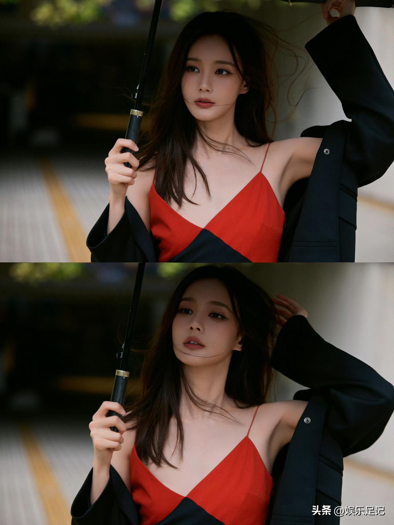 李一桐红黑拼色吊带裙:至臻至简格调,定格优雅迷人瞬间