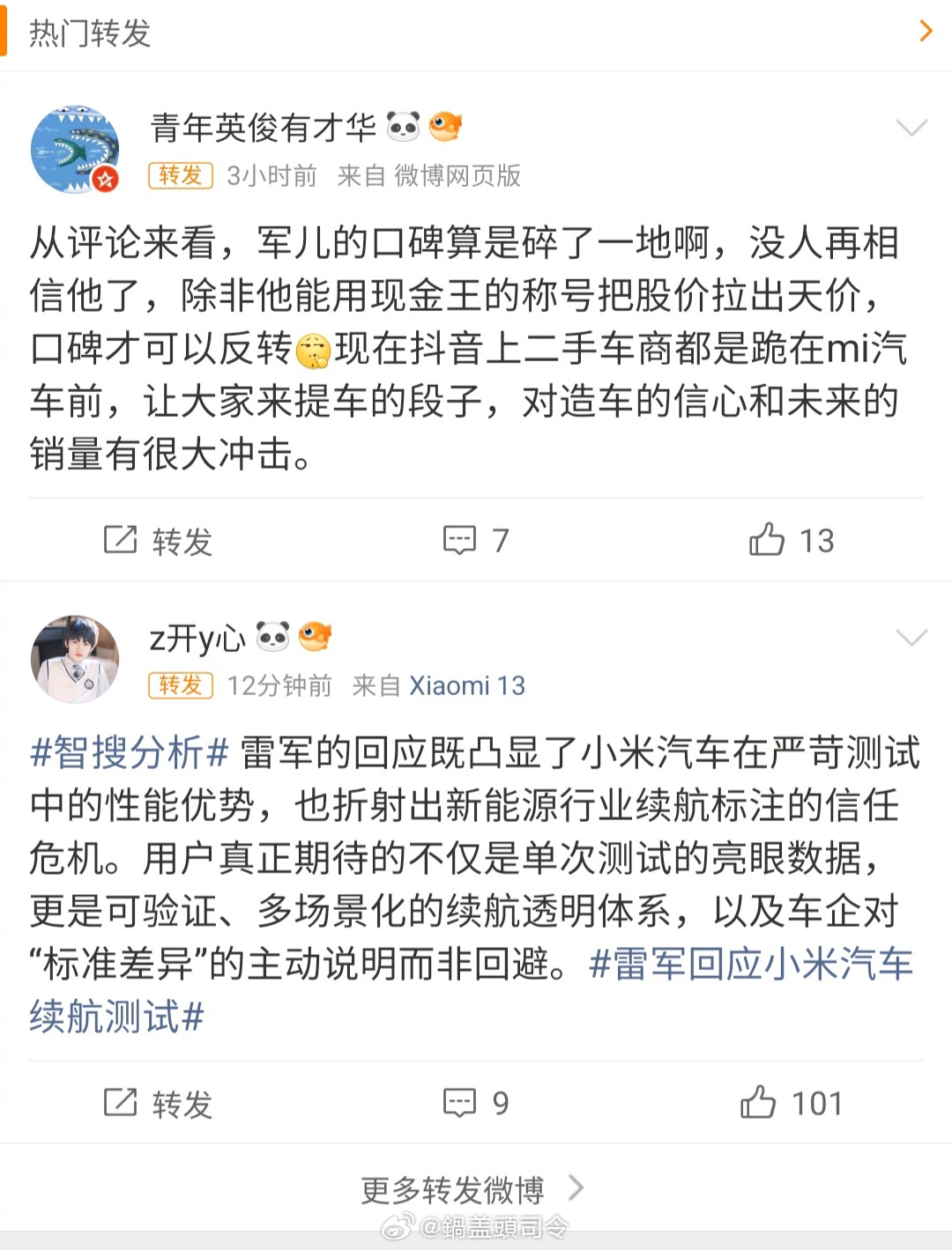 #雷军回应小米汽车续航测试#话题里的评论区,这都咋了……感觉和之前不一样了