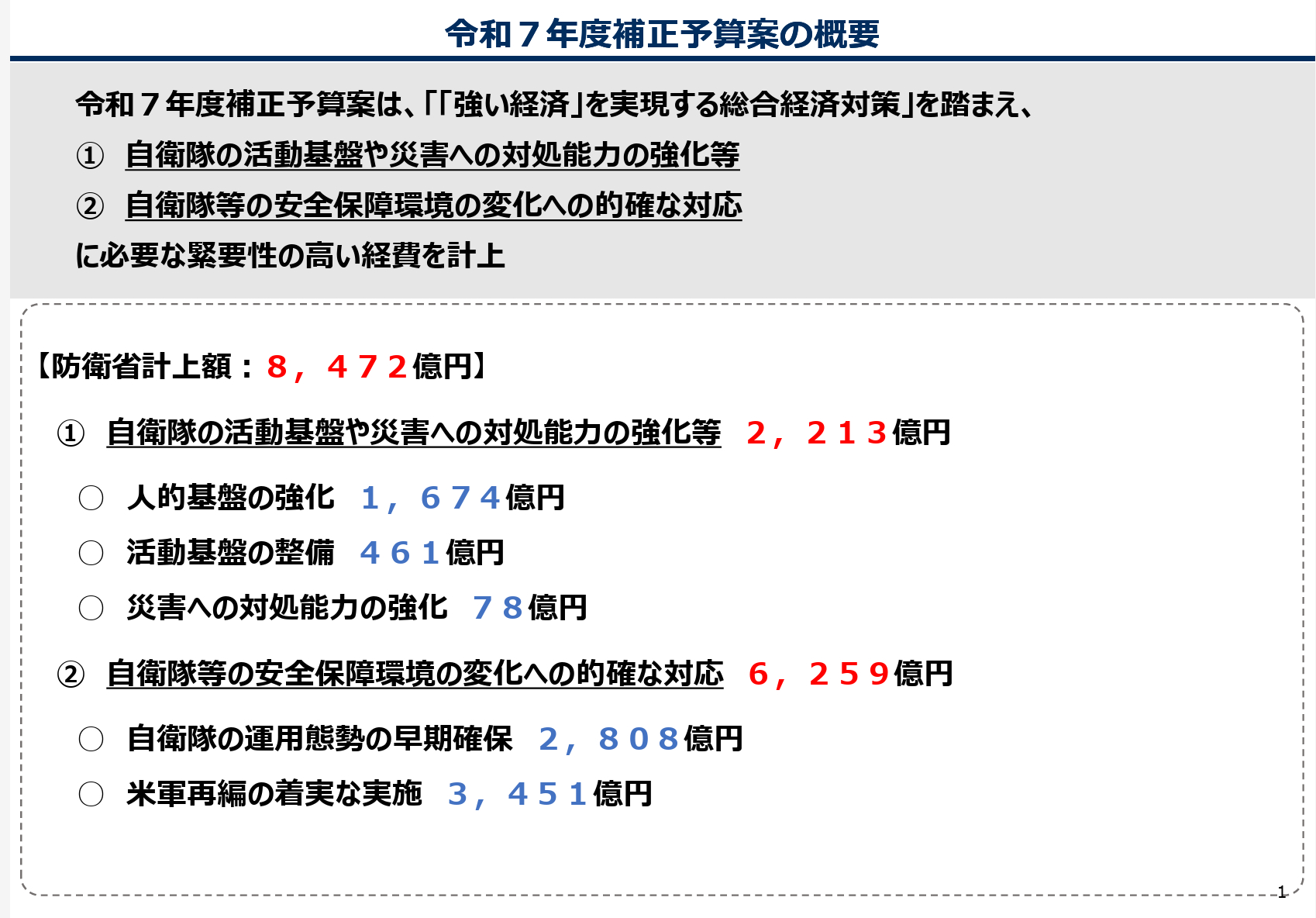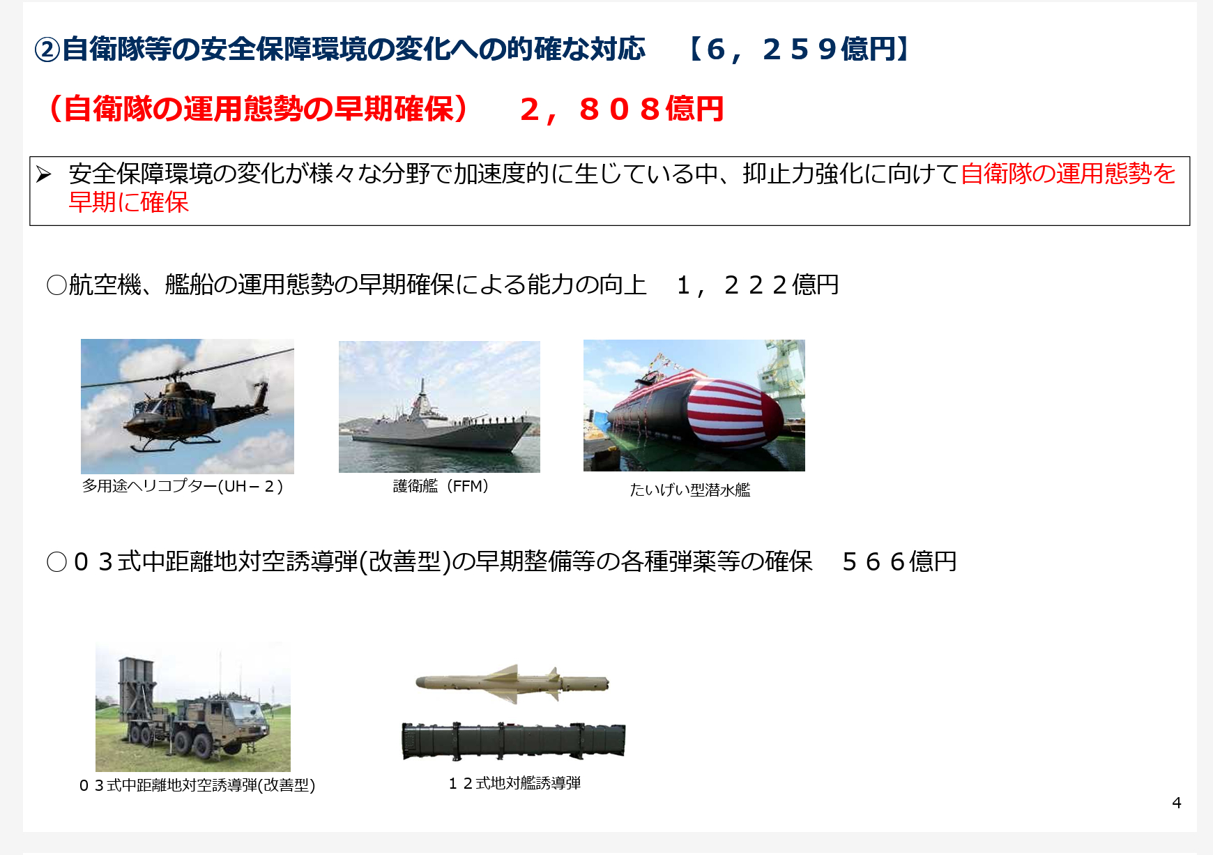 令和7年防卫省补正预算高达8472亿日元,其中1222亿用于确保飞机、军舰的采购方面。防卫省说这笔钱其实是将已经编入预算的下一年度建造费用提前支付给生产厂家,以期加快交付进度。其中包括——2艘最上级FFM:115亿——2艘新型FFM:29亿——4艘大鲸级SS:393亿——16架UH-2:56亿另外,补正预算还列了确保弹药采购的费用556亿,主要包括中SAM(改)、12式SSM。