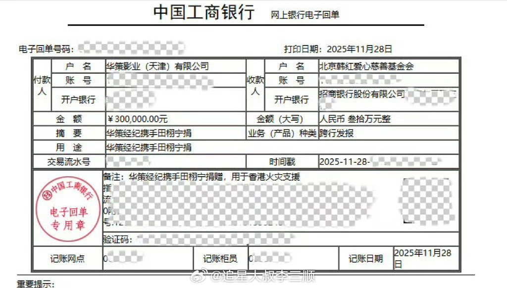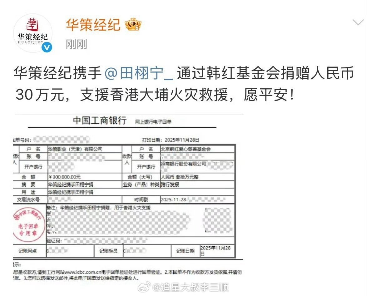 刘雨昕为香港火灾捐款100万元🙏🏻