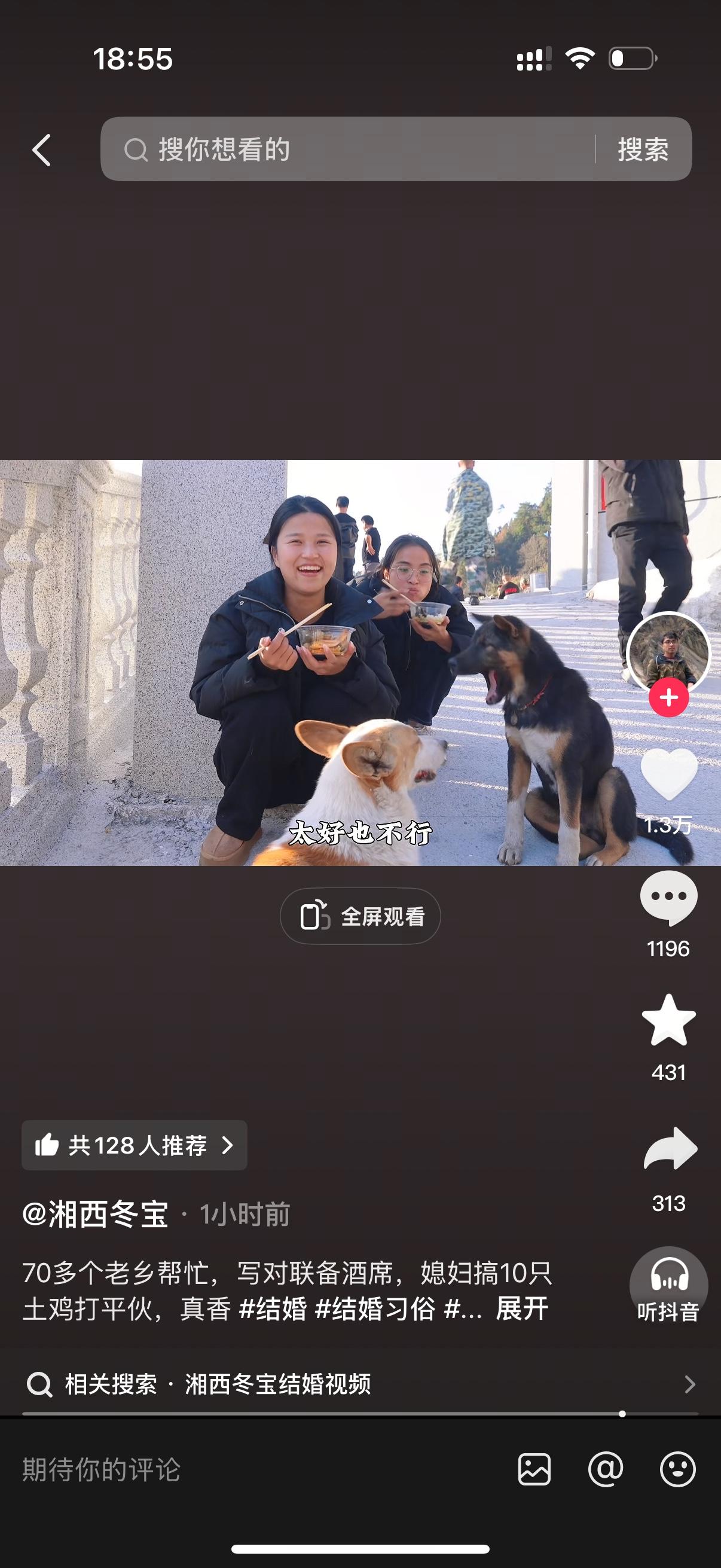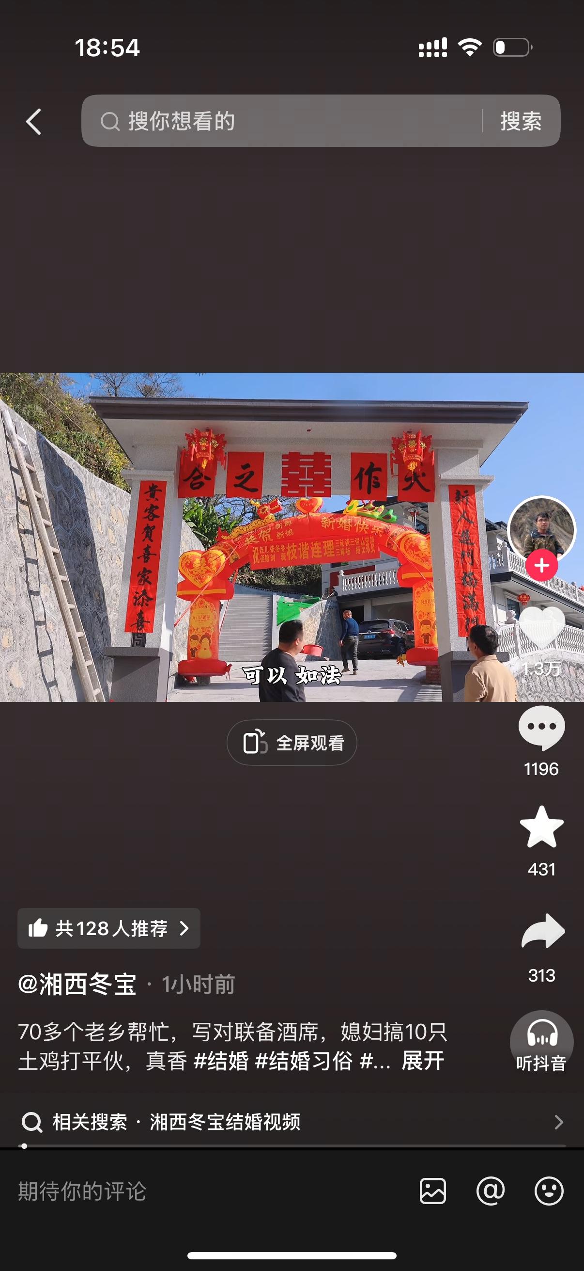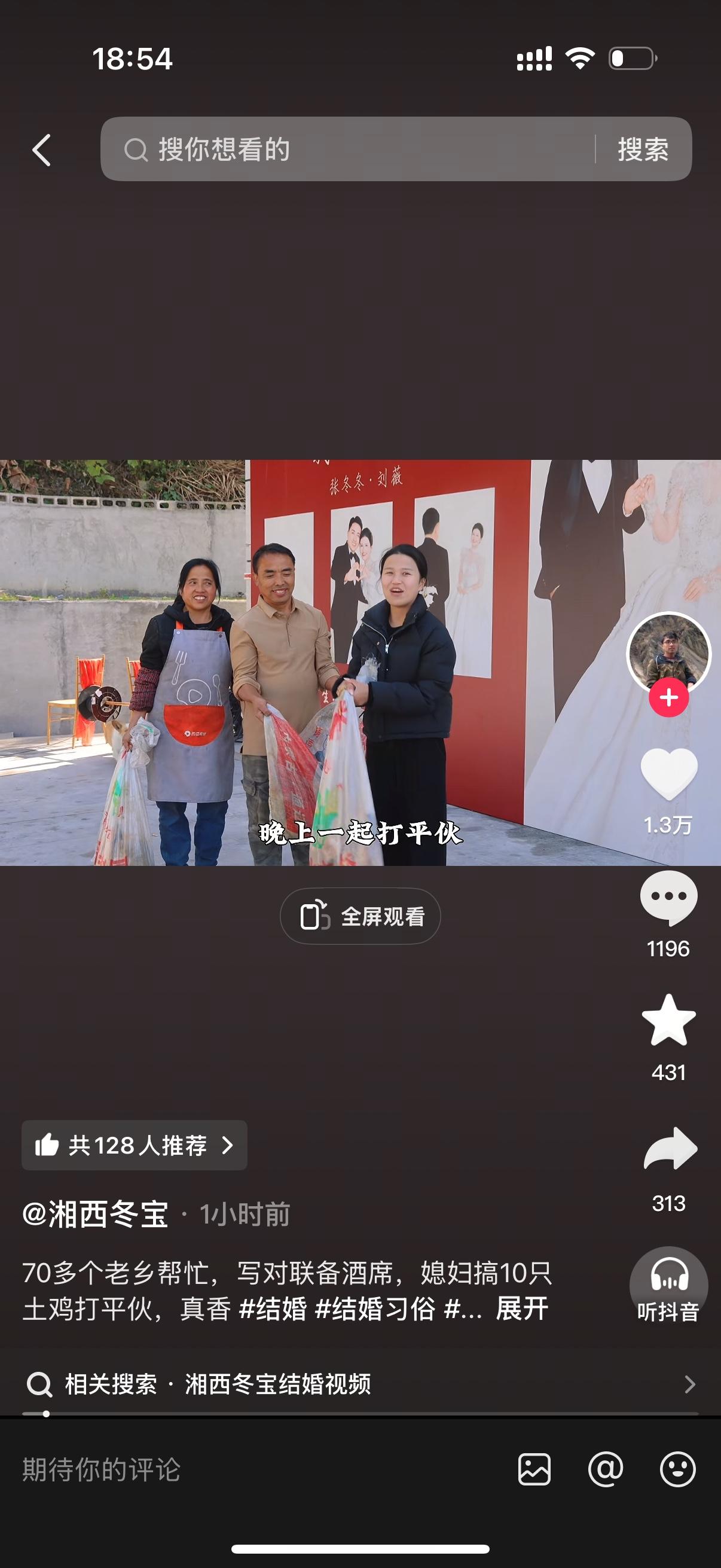 湘西冬宝终于要举行婚礼了。湘西冬宝和他的媳妇历经磨难,终成正果。这注定是一场世纪婚礼,毕竟湖南最大的网红非冬宝莫属。婚礼那天,估计湖南各地的一些大网红都会陆续参加,这波流量他们不可能不蹭。不过冬宝如此低调,还不一定给他们机会,可能都不会邀请。当然也不排除一些人会硬蹭。冬宝没有出现在最新的视频里,估计是接丈母娘去了。 冬宝用短短5年的时间干成了乡里的首富,可喜可贺。