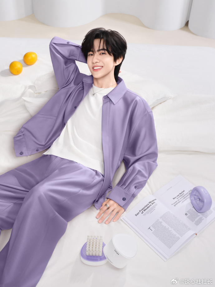 刘轩丞温柔风花絮照淡紫色衬衫造型凸显温柔少年感💜刘轩丞全新 物料大片来袭,快来