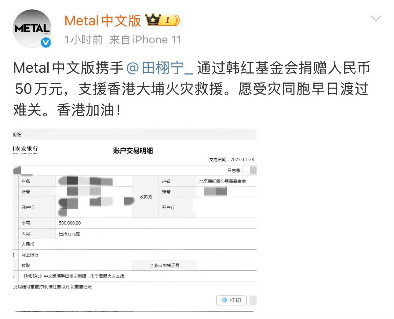 华策经纪携手田栩宁捐赠30wmetal携手田栩宁捐赠50wMetal携田栩宁捐赠50万