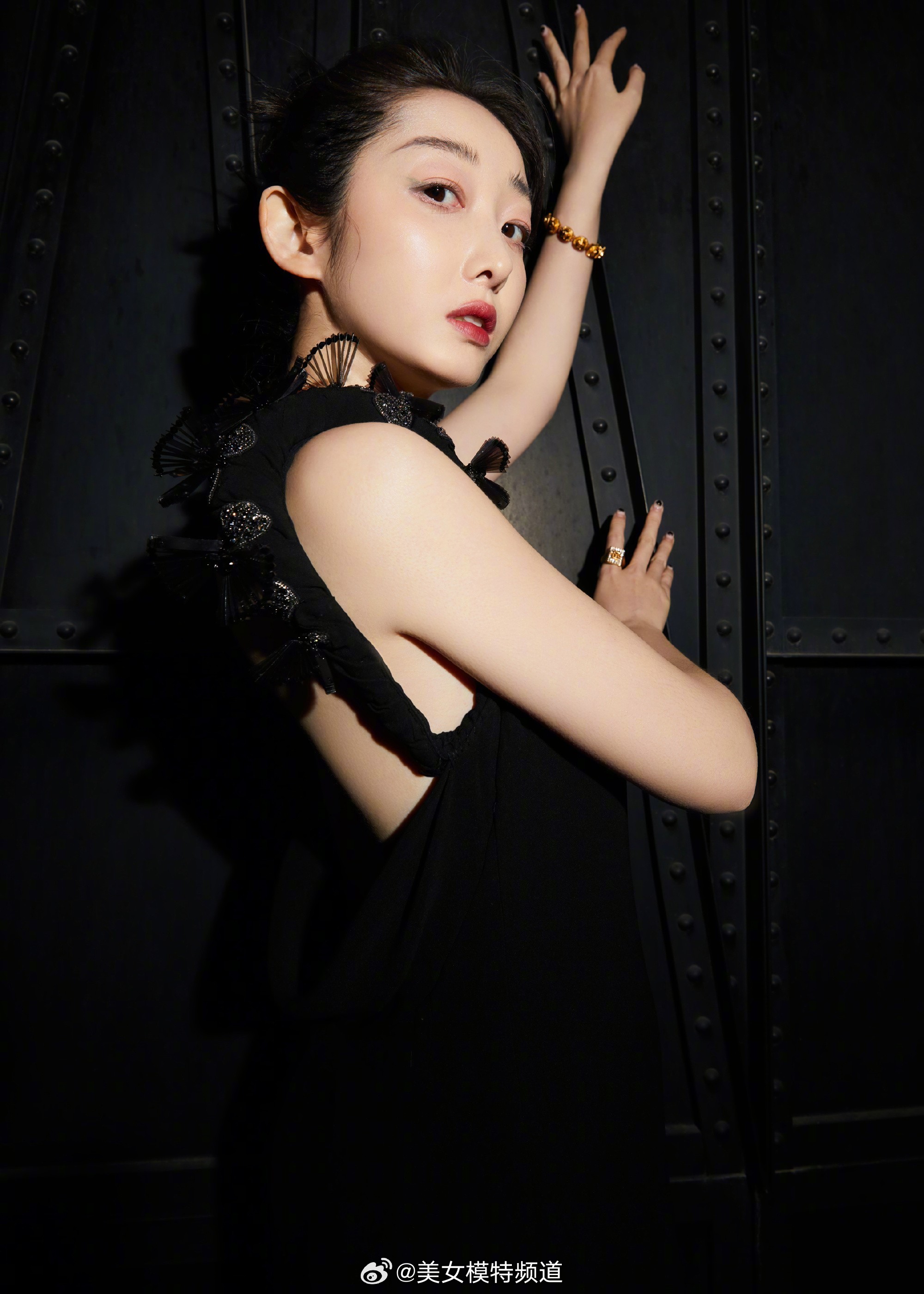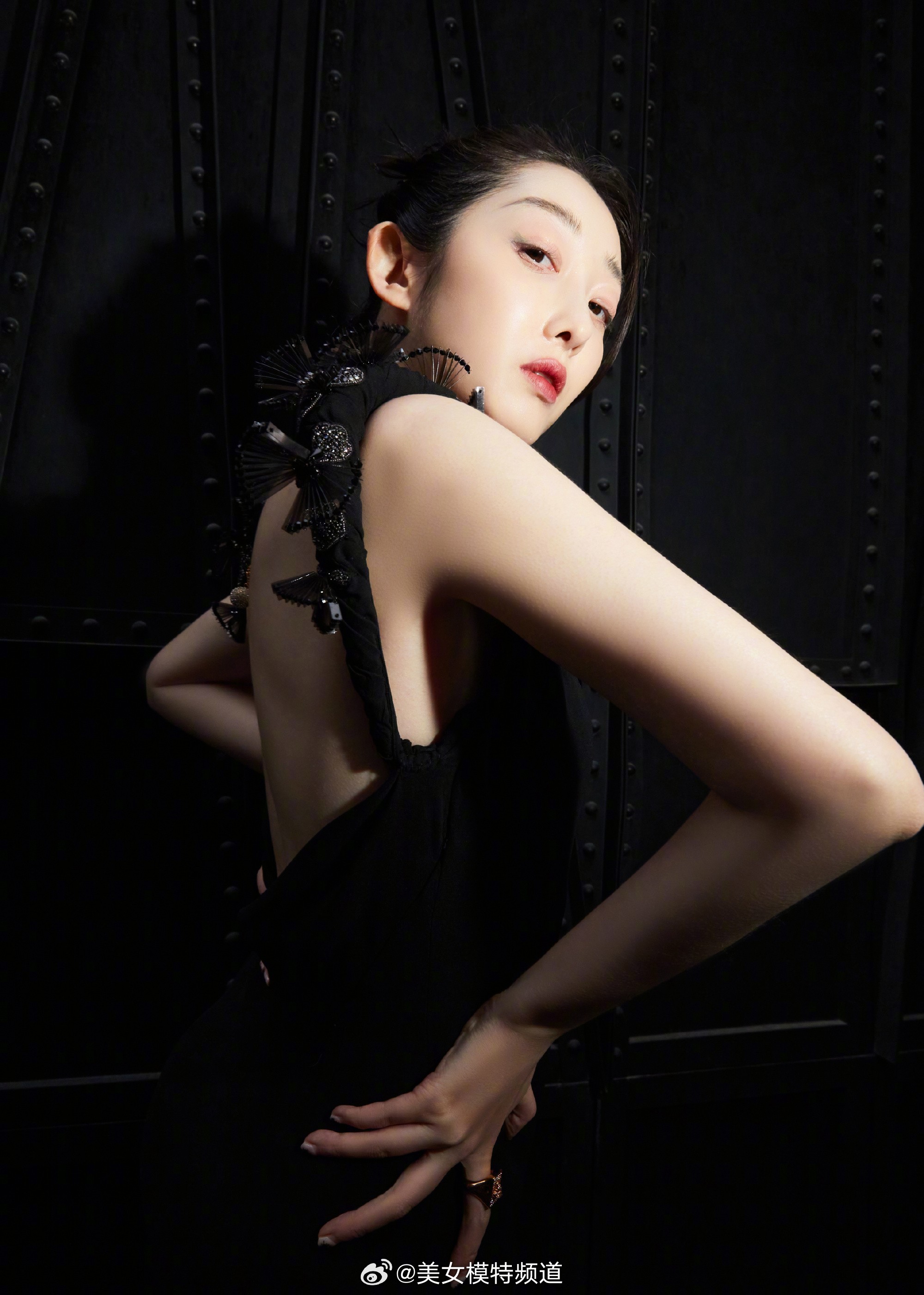 蒋梦婕蝴蝶结系带露背长裙大片