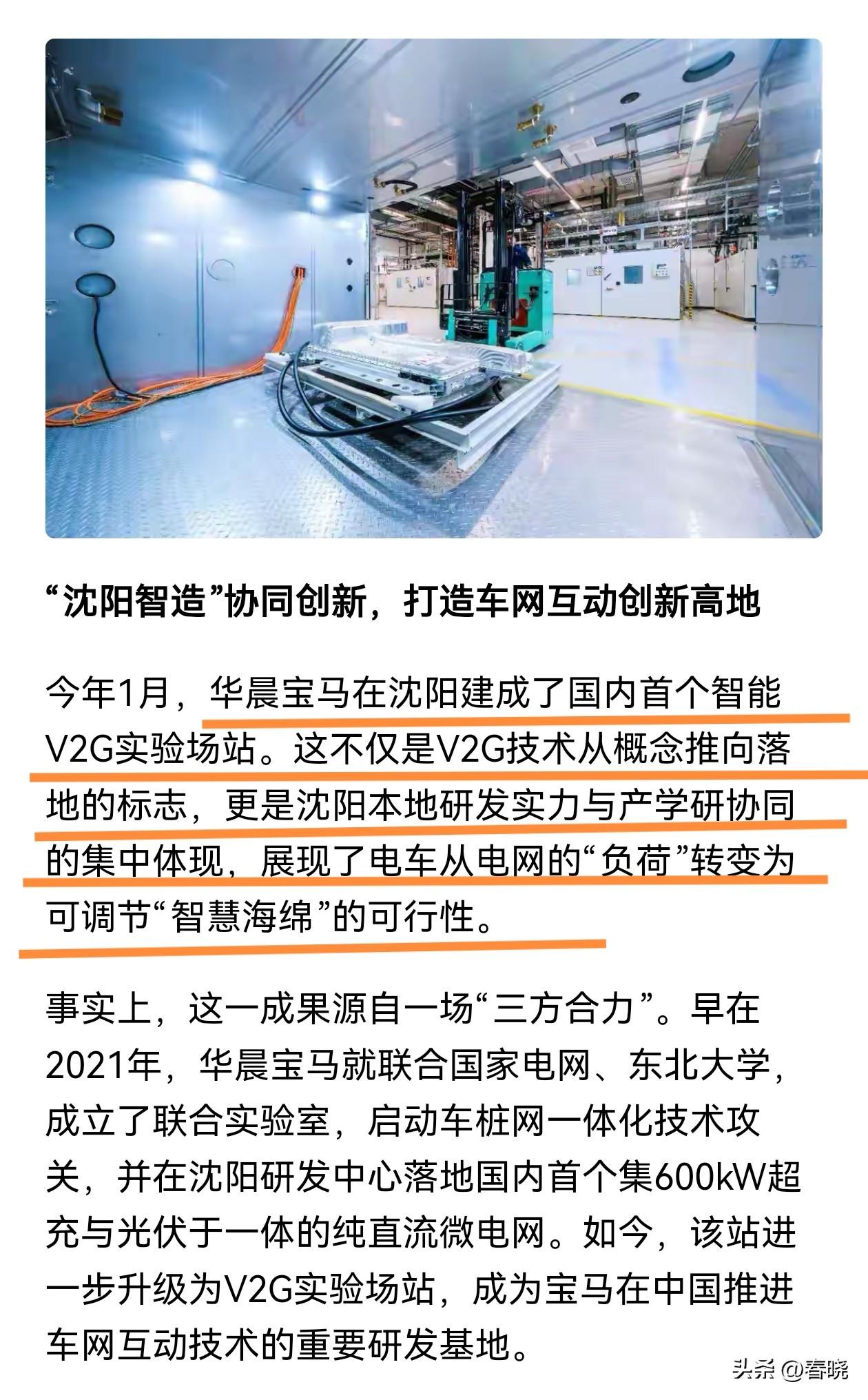 沈阳华晨宝马,今年建成了国内首个智能V2G实验场地,标志着沈阳在智能化等新质生产