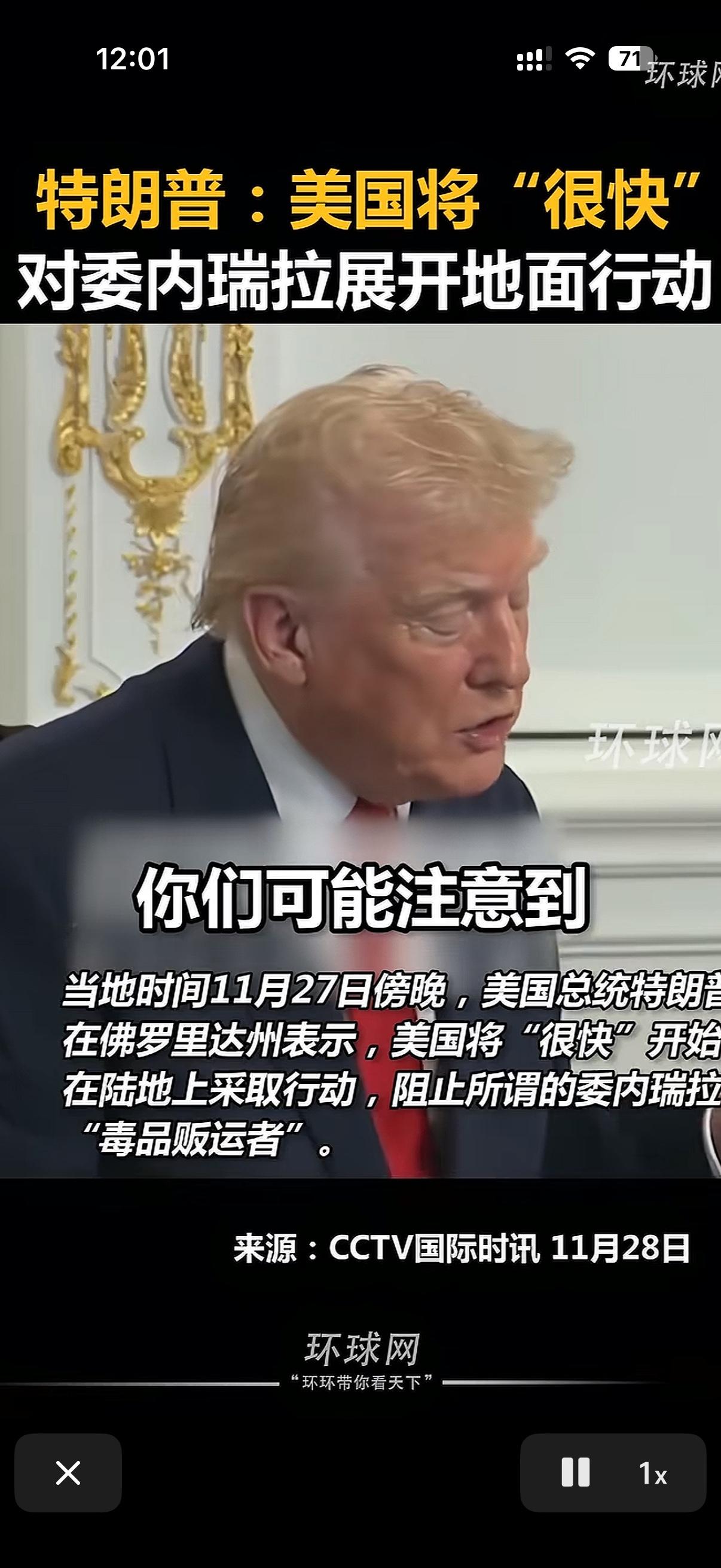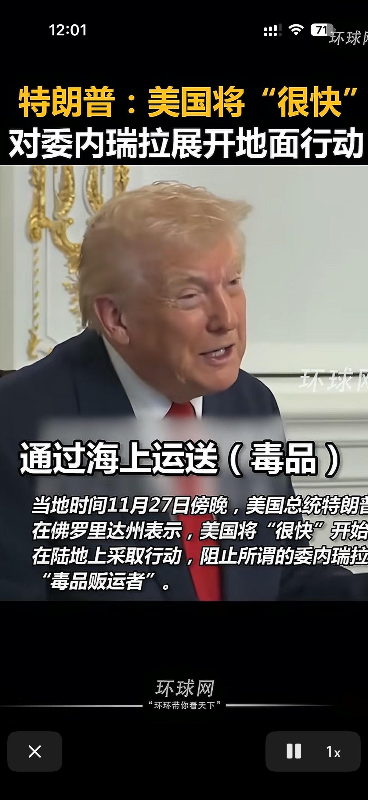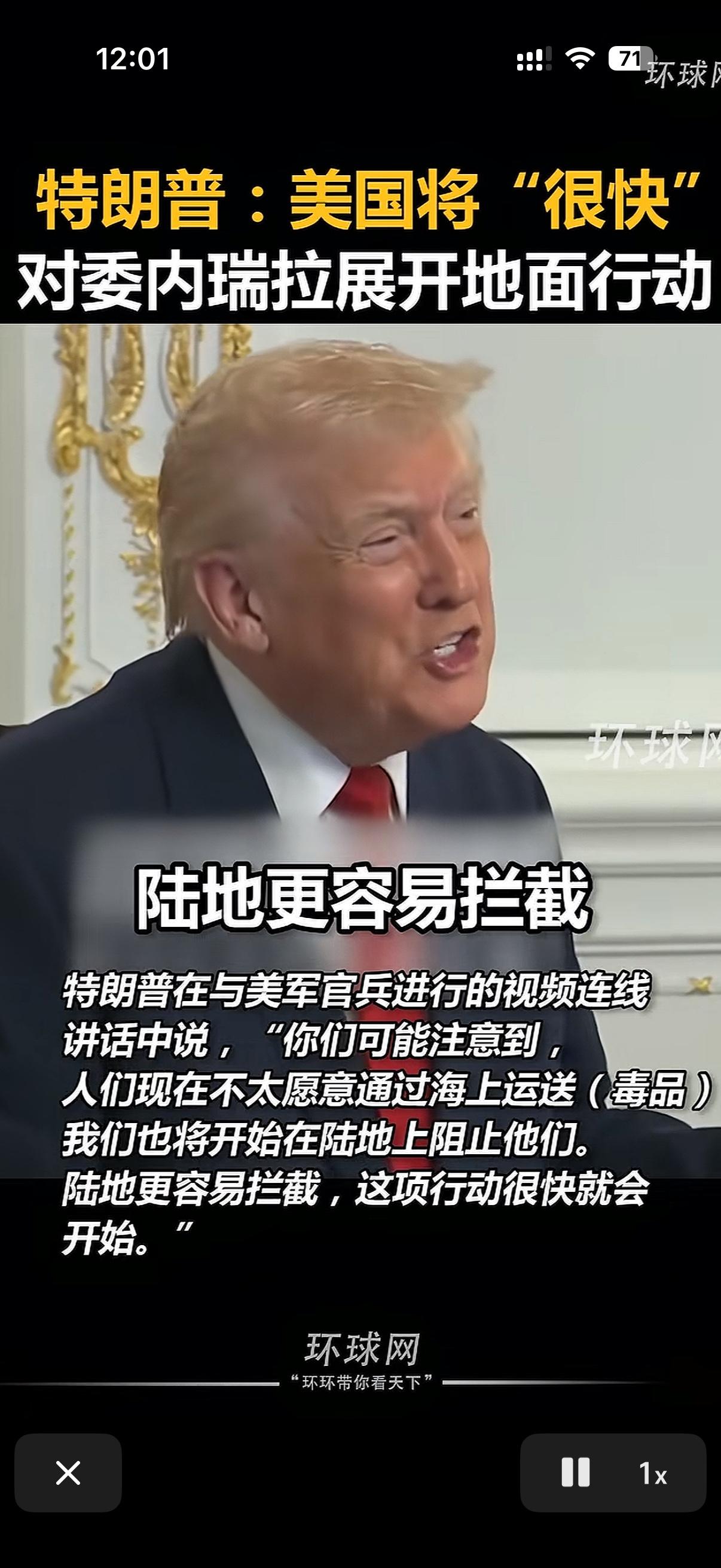 特朗普称要从陆地对委内瑞拉动手! 特朗普说必须要对委内瑞拉展开行动。现在海上的拦截已经达到效果了,因为海上的拦截美国有军舰,委内瑞拉已经不愿意通过海上运送毒品了,现在是时候展开陆地上了拦截了! 相比海上拦截,特朗普认为陆地拦截更容易一些,因为陆地拦截就那么几条路线。特朗普称必须阻断所谓的委内瑞拉毒品贩运者! 看来特朗普已经整合好国内的矛盾冲突了!