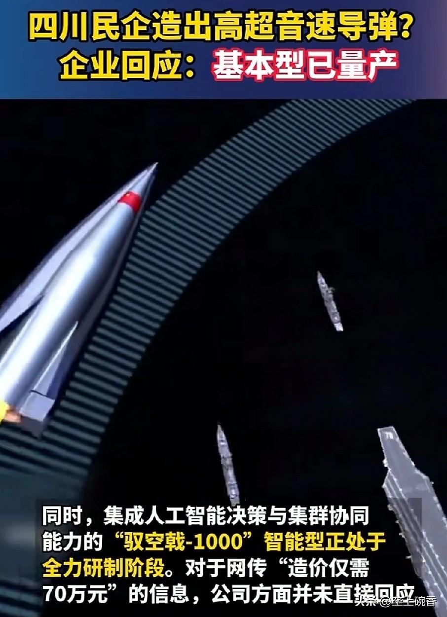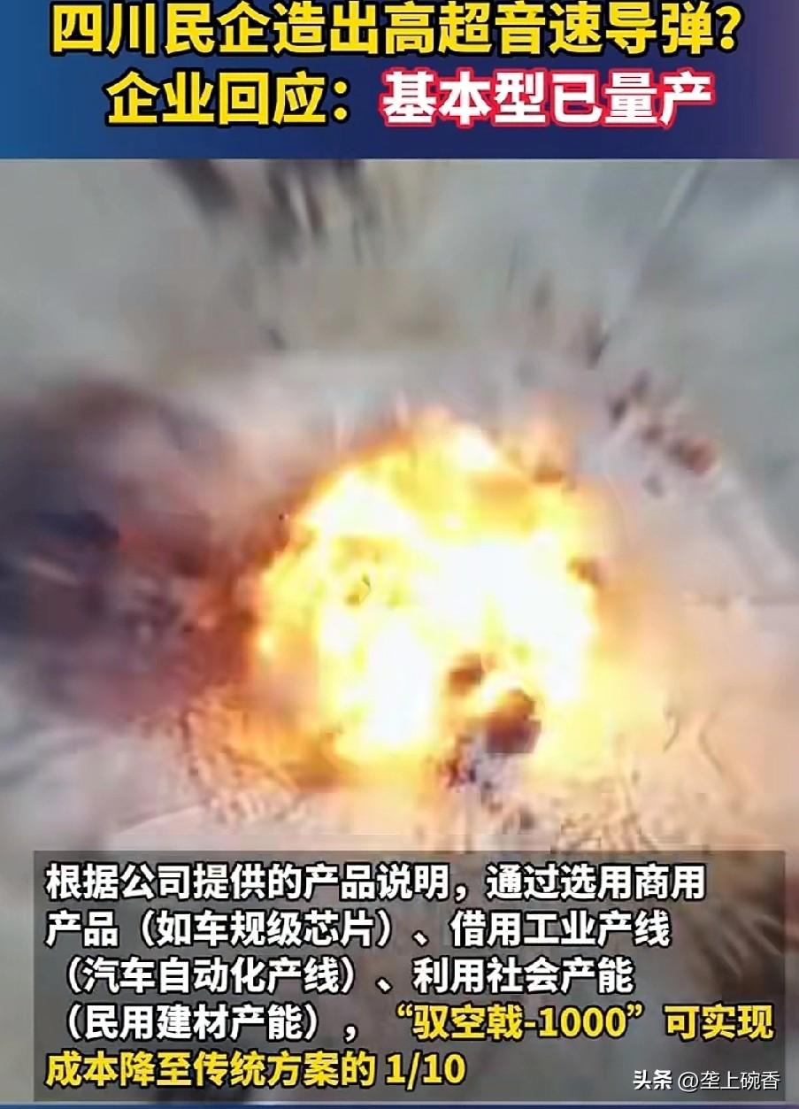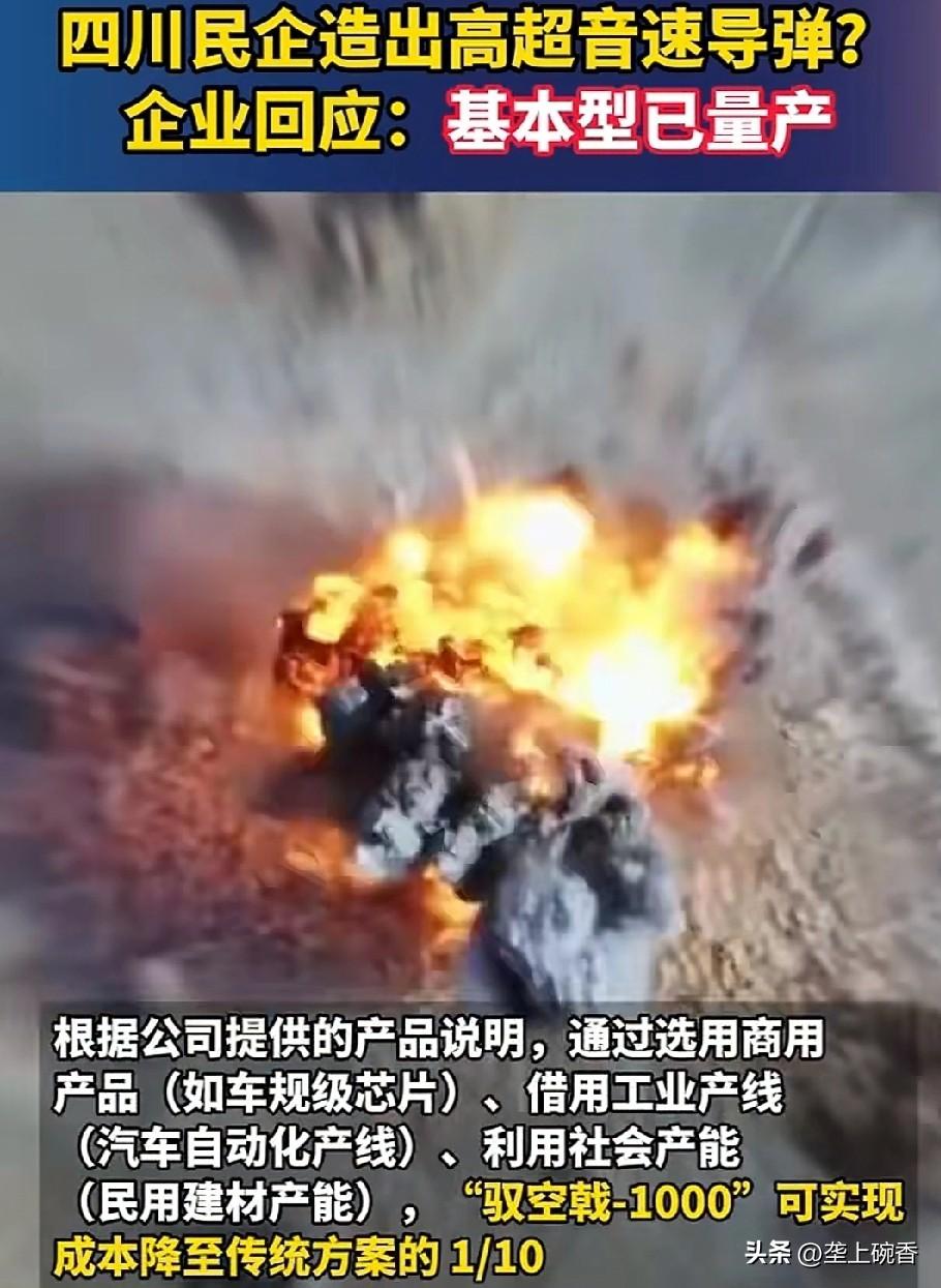 民营企业能造高超音速导弹,这对于民企来说是科技能量的一次爆发释放。今后应该有越来越多民企参与到军用产品的研发制造当中去。这种趋势应该是越来越扩散到众多民企当中去。但当前的问题是民企生产研发制造军用产品,是内销还选择性外销?目前四川这家民企已经批量生产军工产品,其产品应该是得到军方的认可并对其下来订单,如若不然这批量生产的产品销往何处?难道这家你们企拿到了出口许可证了?内销都话应该有困难,外销的话客户还是比较多。毕竟中东有众多客户需要这款产品,另外非洲众多国家也需要此类产品。