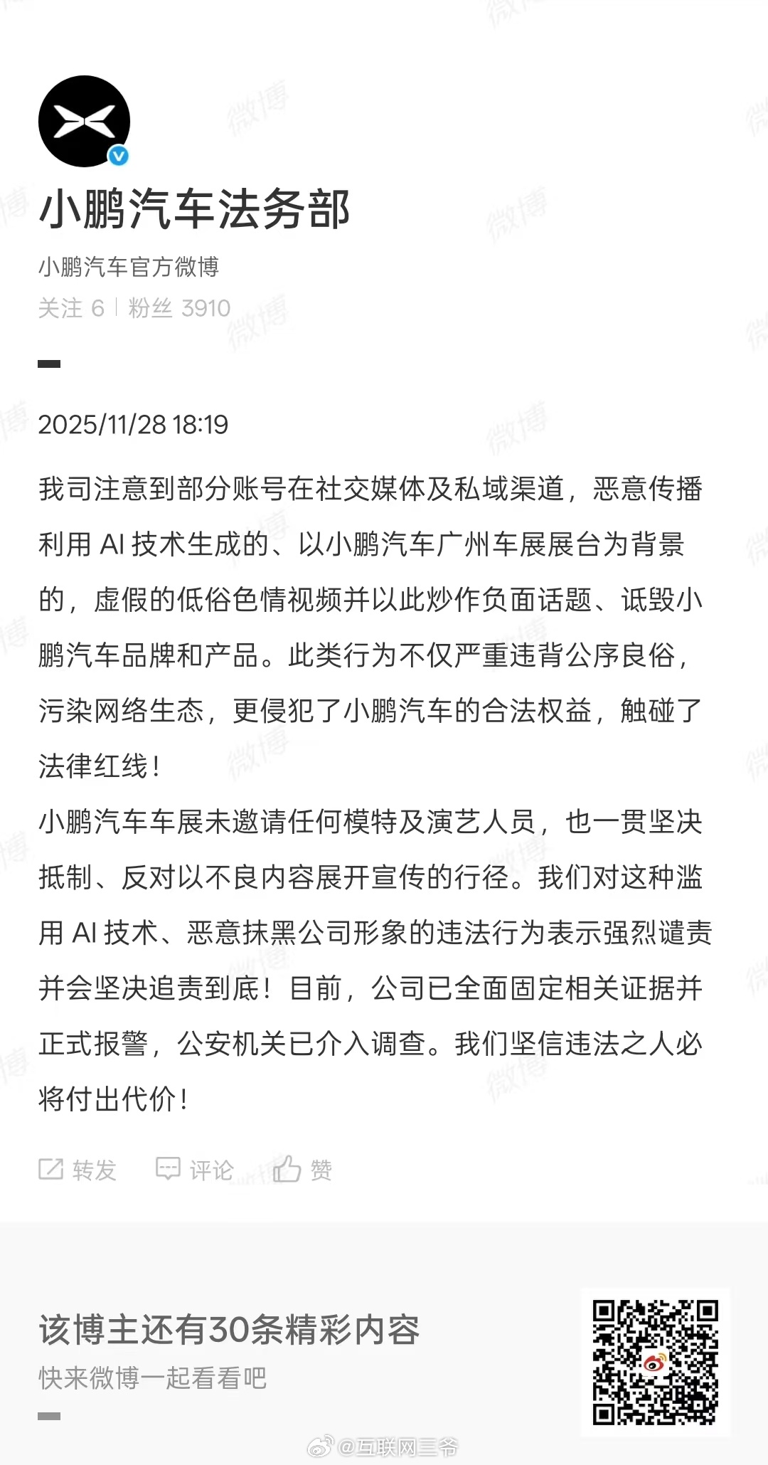 小鹏报警真的离谱,现在的AI技术太能以假乱真了,本来几个群里看到图片觉得一眼假,然后视频也出来了。还好小鹏报警还挺及时的,也有效的控制了舆情的扩散,贼人太坏了!