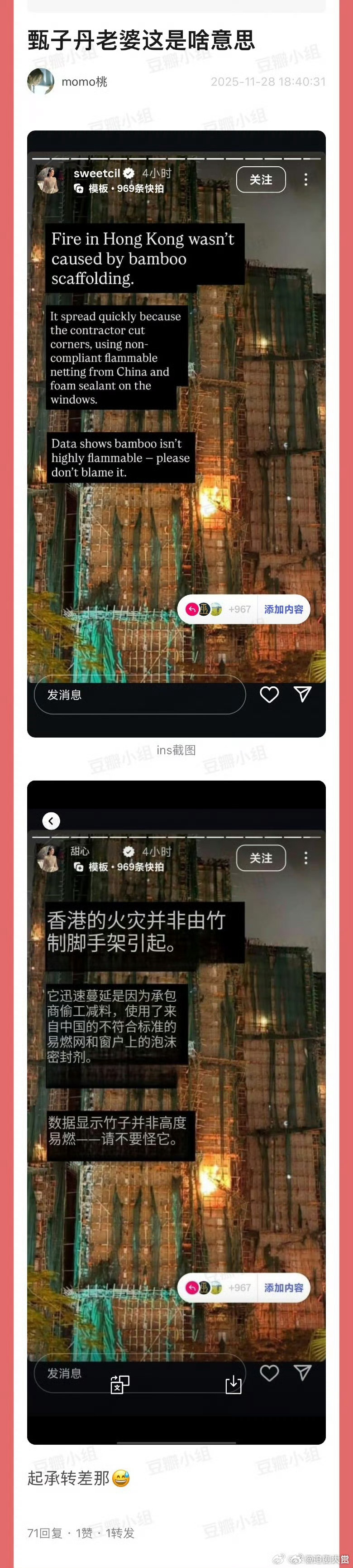 甄子丹老婆ins发文甄子丹老婆在ins发了迷惑言论,随后删除该内容并在微博发文