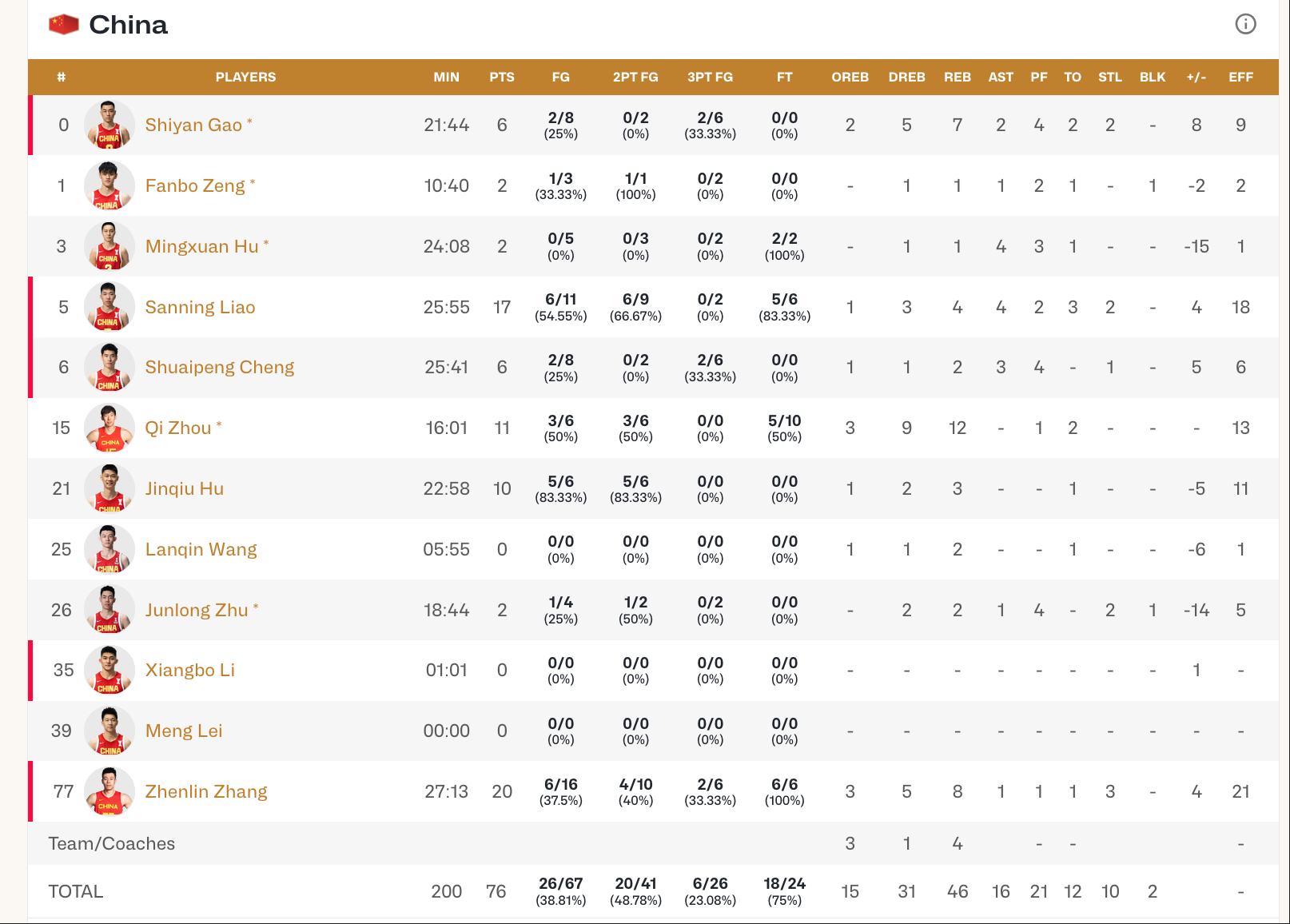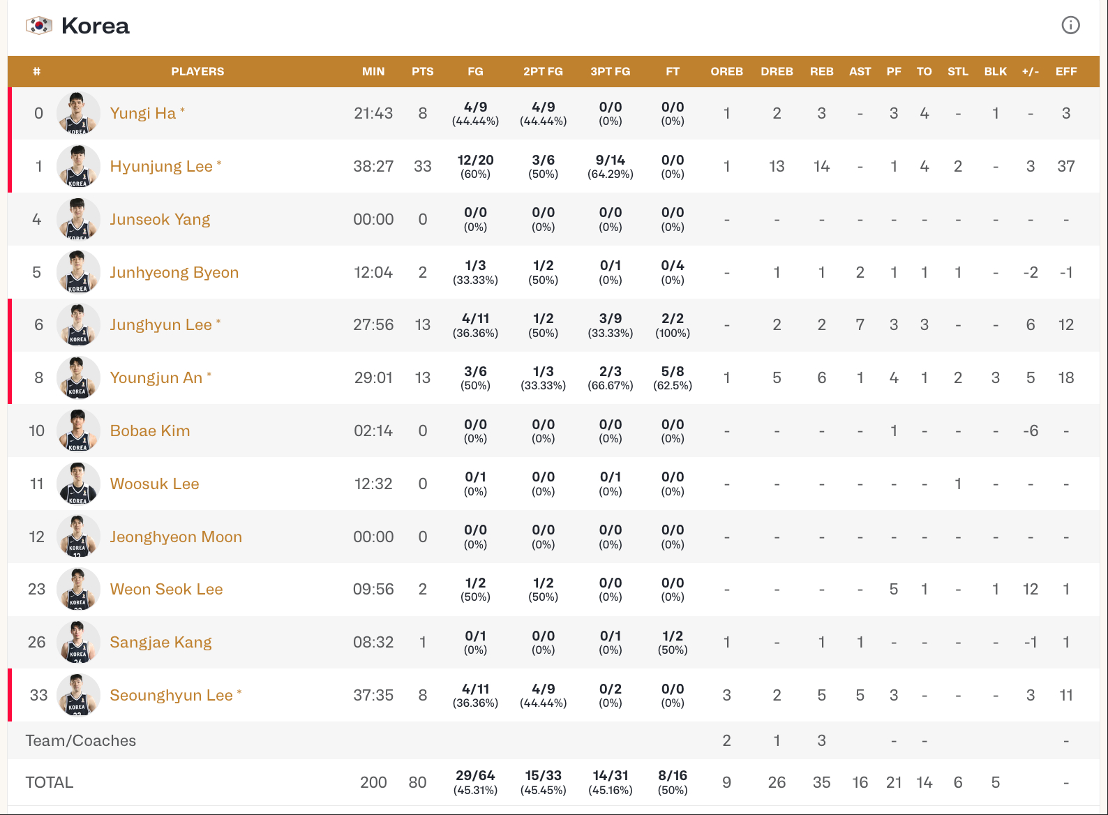 本场比赛数据统计金金末节暴走李贤重9记三分太扎眼了中国男篮主场不敌韩国男篮李贤重33分