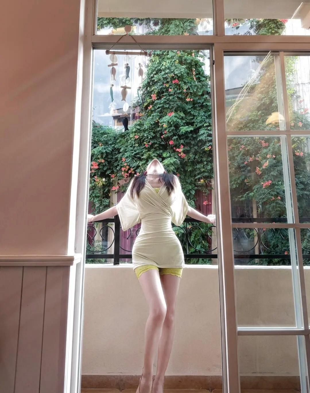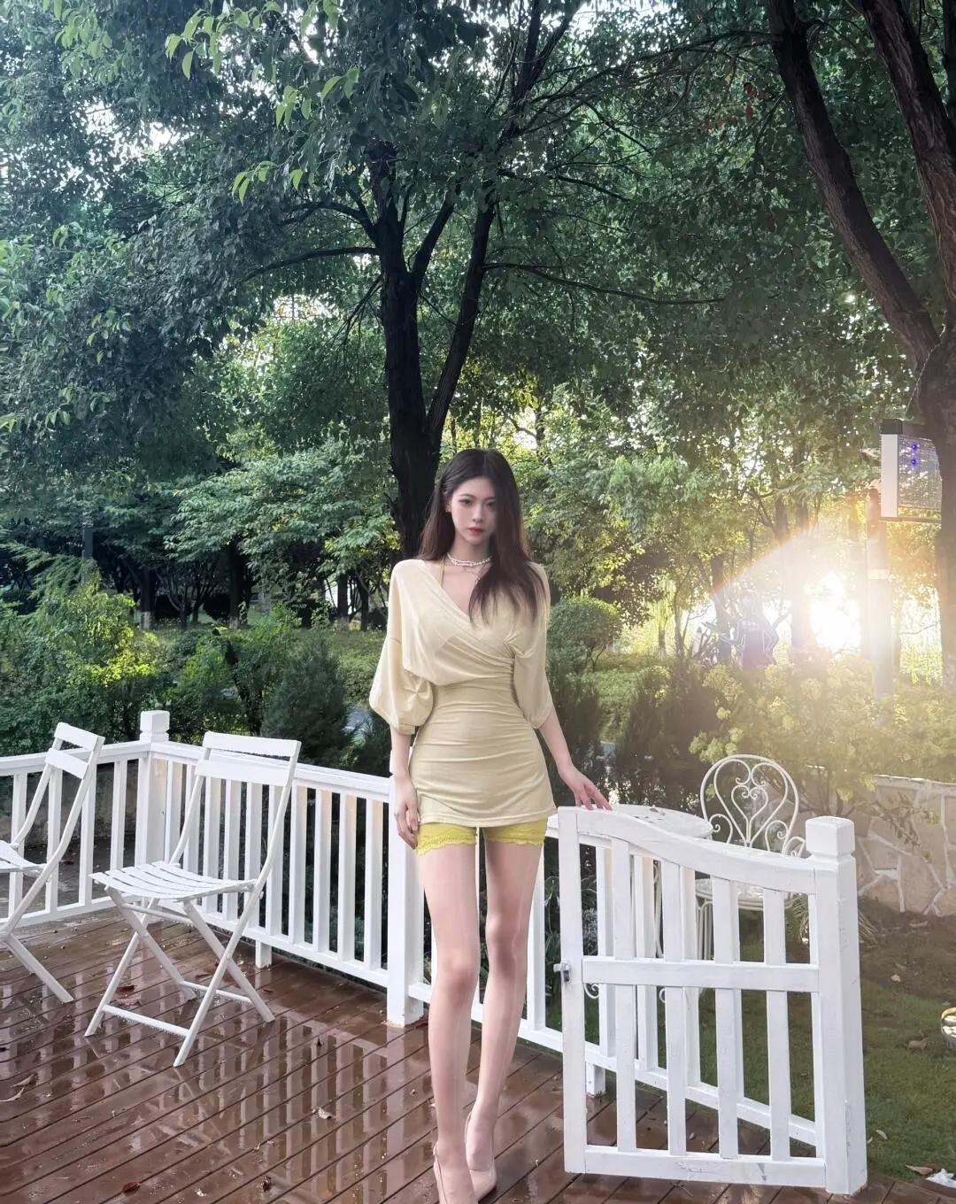夏日清新穿搭,浅黄色连衣裙搭配白色木栅栏,阳光洒落,自然美拍。20多岁女生适合什么样风格的穿搭
