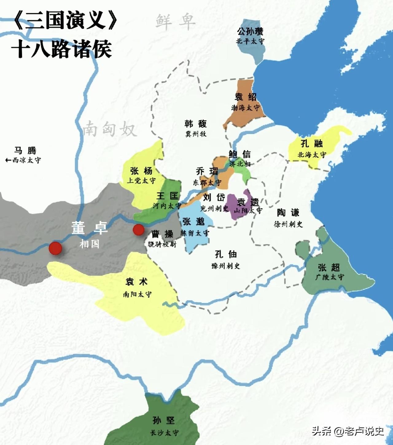 《三国演义》中关东十八路诸侯对峙董卓形势图,按理说,关东地区无论是人口、兵员、粮食及地盘,都远超过占据司隶及关中地区的董卓集团,为何讨董联军最终却失败了? 三国演义 历史