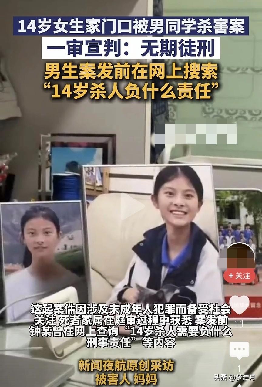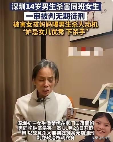 14岁男生杀害女同学被判无期,被告人听到判决时面无表情 这样的结局他应该早就预料到了,因为他在做案前就曾经上网查询过“14岁杀人会负什么责任”等内容。 2025年4月8日晚上七点左右,曾女士14岁的女儿优优被同小区的同学钟某某杀害,优优被捅了26刀。 “被锐器刺切胸部、背部、左锁骨下致心脏贯通创、双肺破裂、锁骨下静脉破裂失血性休克死亡。”这是法医给出的结论。 曾女士永远也忘不了那天的情景。她在家中等待女儿回家,结果听到有人在楼下大喊:“有人晕倒了!”听到喊声,曾女士有不好的预感。 她慌忙跑下楼,下楼前她还抓了一把糖,因为此前优优有低血糖晕倒的情况,她能猜到最坏的结果就是优优低血糖晕倒了,但她万万没想到情况比她预想得要糟糕千倍万倍,她跑到楼下,发现她的宝贝女儿优优正倒在血泊之中,一动不动。 曾女士把优优送到医院抢救,但遗憾的是优优还是离开了人世。 警方很快就锁定了嫌疑人,让曾女士想不到的是,这个人竟然是优优的同学钟某某。 4月8日那天,钟某某放学后和优优一起下车。因为他们两人和同小区的陈某某在同一学校上学,平时上下学都是三位家长轮流接送三个孩子。当天是陈某某的父亲负责接送,优优和钟某某下车后,陈某某的父亲开车离开,陈某某也回了家。 优优准备上楼时,钟某某突然跑到优优面前,举刀捅刺优优。 优优倒地不起,钟某某却还是不罢手,他继续猛刺优优的后背、胸部。然后他迅速跑开,此时优优开始大喊“救命”。 钟某某没有逃跑,反倒又折回来,他跪压在优优身上,朝其脖颈处又捅了数刀,优优再也无法发声,钟某某这才逃离现场,他将作案刀具扔到路边。 钟某某一路跑回家,到家后家人问他为什么手上有血,他居然谎称自己见义勇为时被别人砍伤。 曾女士想不明白钟某某到底为什么会杀害优优,两人虽一起坐车,又是同一个班的,但交集并不多。 警方给出的解释是钟某某因生活琐事,对优优心生不满,所以才拔刀相助。什么样的琐事可以激发这么大的仇恨,以至于非要置优优于死地?什么样的怨恨,要用26刀来抵偿? 11月28日,这一案件在广东省深圳市中级人民法院一审公开宣判,被告钟某某以故意杀人罪被判无期徒刑,剥夺政治权利终身。 这样的结果让优优妈妈痛哭流涕,她心有不甘,但又无可奈何! 在法庭上,钟某某还说自己想回家、回学校,真让人无语!那个被他杀害的优优不想回家,不想回学校吗?但她永远也没有机会了,这一切都是拜钟某某所赐,现在他自己倒想着回家、回学校,良心不会痛吗? 钟某某和其父亲都曾经下跪乞求原谅,但这让优优的父母如何能够接受?那么可爱又优秀的女儿没了,难以想象优优的父母余生该如何度过。 未成年人暴力犯罪事件总是能引发人们的关注,我们扼腕叹息,因为这样的案件受到牵累的可能是两个甚至多个孩子。有些孩子在心智不成熟时犯下滔天大错,有些孩子因他人的错误而受到伤害甚至失去生命。 关注未成年人的心理健康,对其进行正确引导,让他们正确释放不良情绪,避免他们误入歧途,需要家长、学校、社会共同努力! 未成年人杀人 青少年杀人案