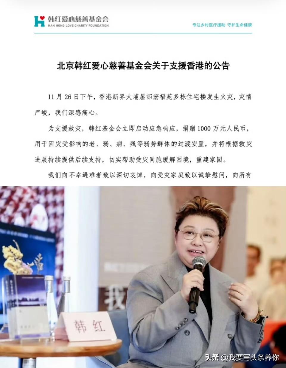 韩红的钱包可能真的要见底了。 不是因为演出费涨了,而是香港大埔火灾后,她的基金会又转出了1000万。有人翻出她之前的采访,她说捐款几乎捐空了家底,演出收入也大多填进公益里。 可这1000万背后,还跟着200多个孩子。这些孩子叫她妈妈,吃穿用度、读书看病,哪一样不是钱堆起来的?有网友算过账,就算每人每月花销不多,长年累月也是天文数字。韩红自己说过,这些年做公益,她越来越穷了。 但奇怪的是,她似乎从没犹豫过。从西藏到贵州,从灾区到医院,她的基金会一年年往偏远地区送医疗设备、建急救室、做白内障手术。有人说她作秀,她直接关掉评论,留下一句“事情做到就行”。 或许对她来说,钱的意义早就不一样了。小时候她吃过苦,奶奶靠卖冰棍攒钱支持她唱歌;长大后她领养孤儿,帮孩子老人,仿佛在填补自己曾经的缺失。这种执念,不是数字能衡量的。 如今明星公益常被盯着查账本,韩红的基金会也经历过质疑,但她坚持公示每一笔款,哪怕一包方便面也要写清楚。透明之下,反而让人更信服。其实普通人操心她“钱够不够花”,不如想想她为何能二十年如一日——公益于她,早不是选择,而是活法。